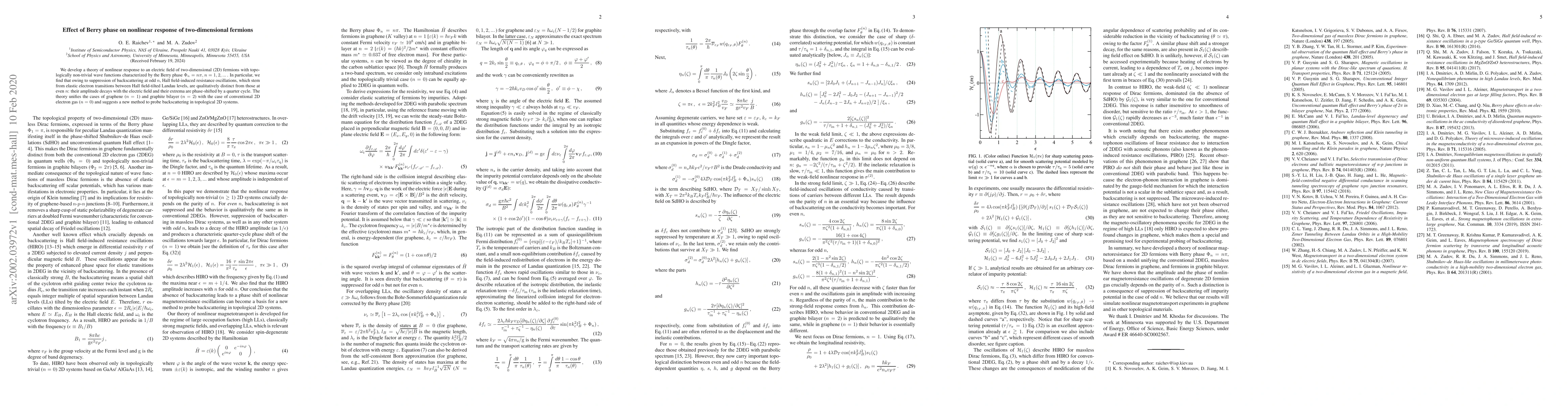 We develop a theory of nonlinear response to an electric field of two-dimensional (2D) fermions with topologically non-trivial wave functions characterized by the Berry phase $\Phi_n = n \pi, n = 1,2,...$. In particular, we find that owing to suppression of backscattering at odd $n$, Hall field-induced resistance oscillations, which stem from elastic electron transitions between Hall field-tilted Landau levels, are qualitatively distinct from those at even $n$: their amplitude decays with the electric field and their extrema are phase-shifted by a quarter cycle. The theory unifies the cases of graphene ($n = 1$) and graphite bilayer ($n = 2$) with the case of conventional 2D electron gas ($n = 0$) and suggests a new method to probe backscattering in topological 2D systems.