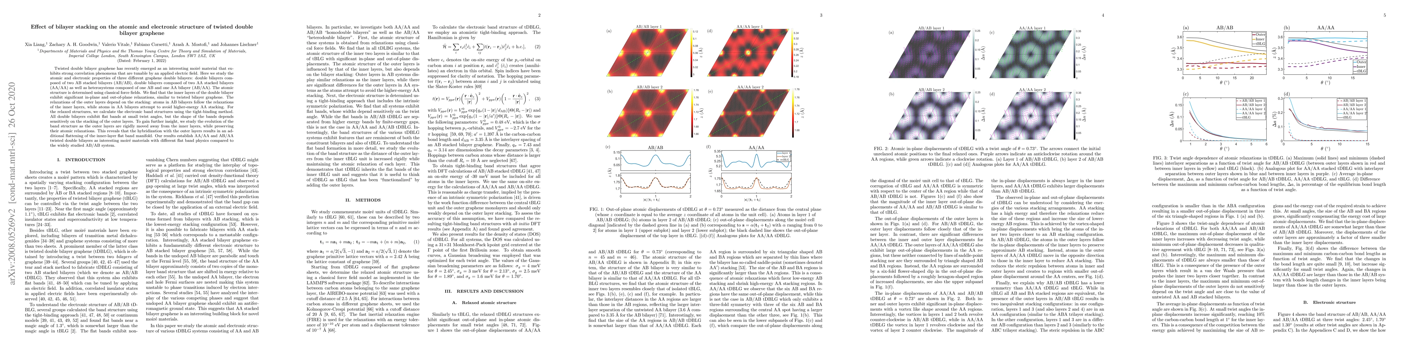 Twisted double bilayer graphene has recently emerged as an interesting moir\'e material that exhibits strong correlation phenomena that are tunable by an applied electric field. Here we study the atomic and electronic properties of three different graphene double bilayers: double bilayers composed of two AB stacked bilayers (AB/AB), double bilayers composed of two AA stacked bilayers (AA/AA) as well as heterosystems composed of one AB and one AA bilayer (AB/AA). The atomic structure is determined using classical force fields. We find that the inner layers of the double bilayer exhibit significant in-plane and out-of-plane relaxations, similar to twisted bilayer graphene. The relaxations of the outer layers depend on the stacking: atoms in AB bilayers follow the relaxations of the inner layers, while atoms in AA bilayers attempt to avoid higher-energy AA stacking. For the relaxed structures, we calculate the electronic band structures using the tight-binding method. All double bilayers exhibit flat bands at small twist angles, but the shape of the bands depends sensitively on the stacking of the outer layers. To gain further insight, we study the evolution of the band structure as the outer layers are rigidly moved away from the inner layers, while preserving their atomic relaxations. This reveals that the hybridization with the outer layers results in an additional flattening of the inner-layer flat band manifold. Our results establish AA/AA and AB/AA twisted double bilayers as interesting moir\'e materials with different flat band physics compared to the widely studied AB/AB system.