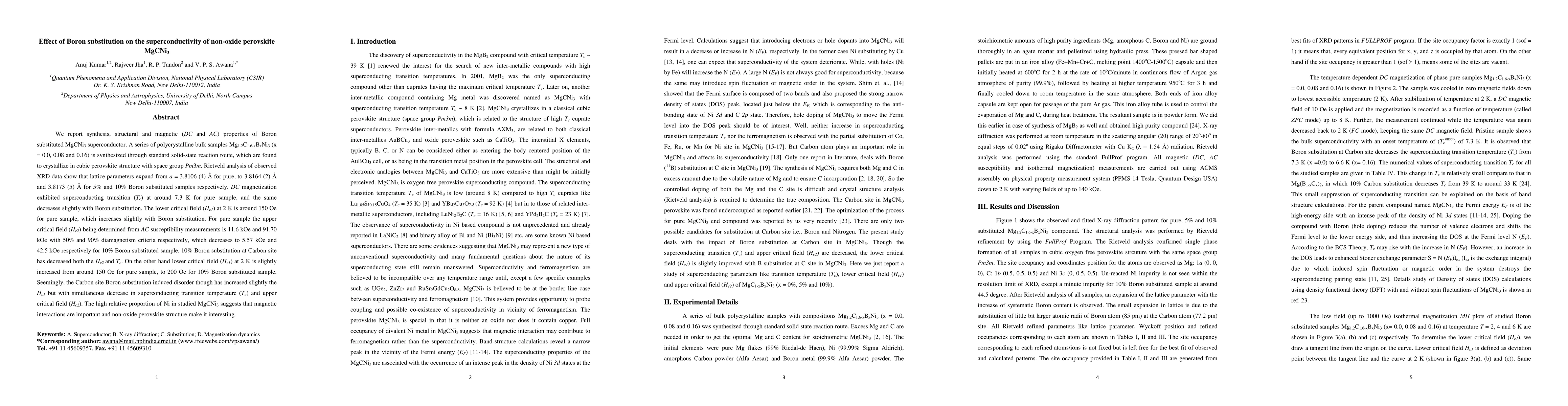 Researchers found that substituting boron for carbon in a specific superconductor material (MgCNi3) slightly increases the lower critical field but decreases the transition temperature and upper critical field of the material, potentially due to induced disorder.