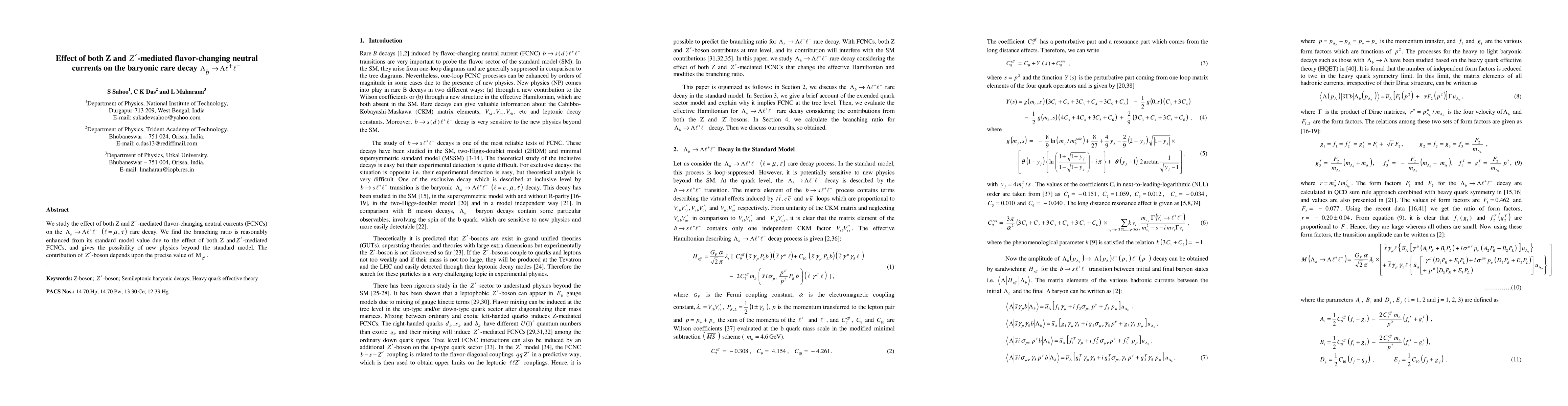 Summary: This paper investigates the impact of Z and Z'-mediated flavor-changing neutral currents on the rare decay $ \lambda_b \to \lambda l^+l^- $, finding an enhanced branching ratio suggesting potential new physics beyond the Standard Model, with Z'-boson contributions dependent on its mass.