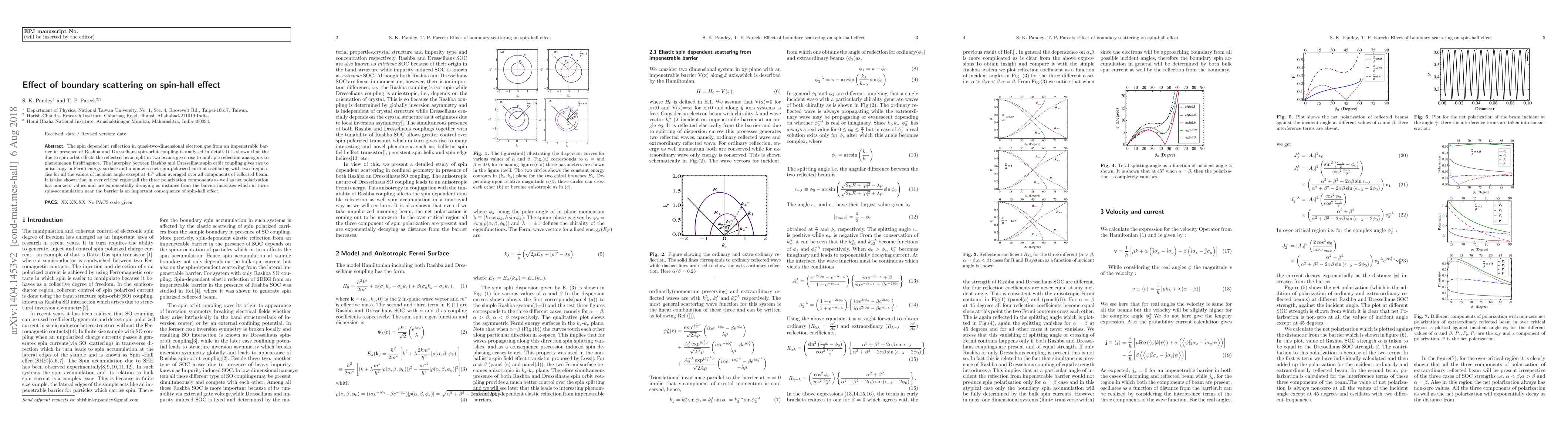 The spin dependent reflection in quasi-two-dimensional electron gas from an impenetrable barrier in presence of Rashba and Dresselhaus spin-orbit coupling is analyzed in detail. It is shown that due to spin-orbit effects the reflected beam split in two beams gives rise to multiple reflection analogous to phenomena birefringence. The interplay between Rashba and Dresselhaus spin-orbit coupling gives rise to anisotropy in Fermi energy surface and a non-zero net spin-polarized current oscillating with two frequencies for all the values of incident angle except at $45^{o}$ when averaged over all components of reflected beam. It is also shown that in over critical region, all the three polarization components as well as net polarization has non-zero values and are exponentially decaying as distance from the barrier increases which in turns spin-accumulation near the barrier is an important consequence of spin-hall effect.