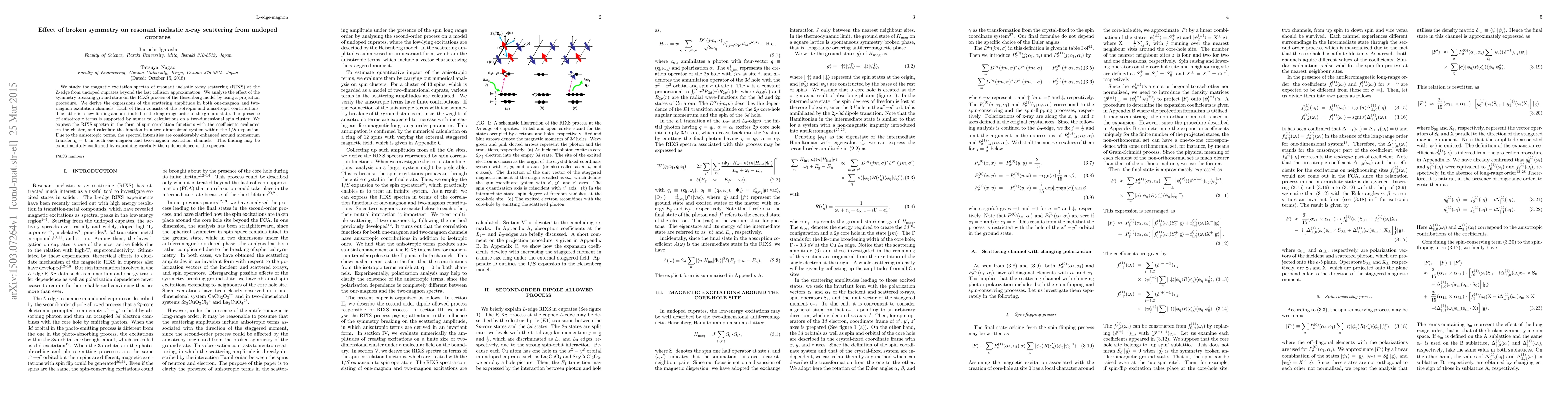 This study investigates the impact of symmetry breaking in the ground state on resonant inelastic x-ray scattering (RIXS) in undoped cuprates, revealing new anisotropic contributions to the scattering amplitude. The findings suggest enhanced spectral intensities near $\textbf{q}=0$ due to these contributions, potentially observable in experiments.