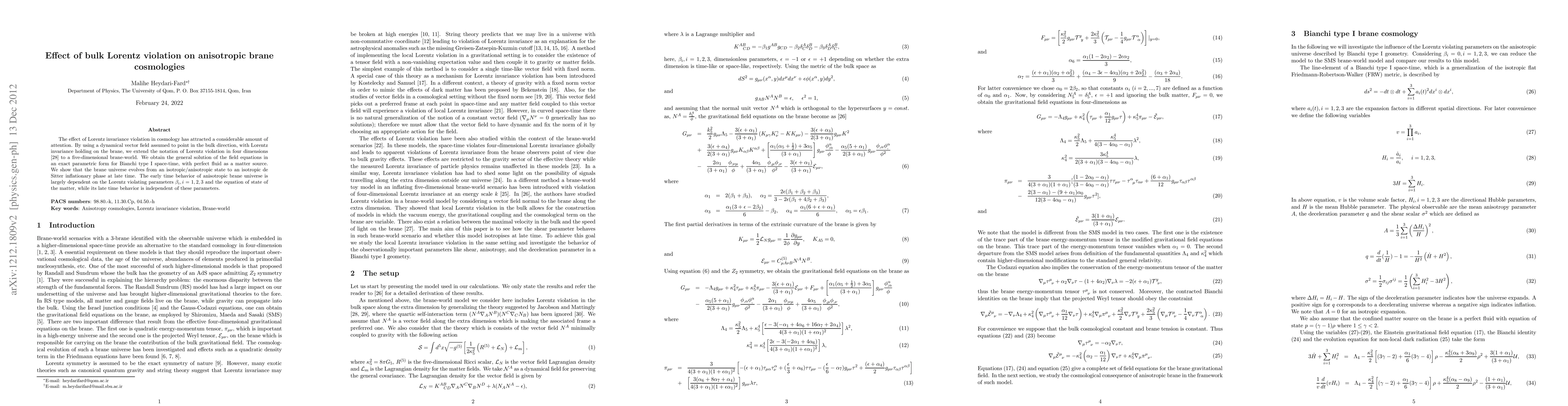 This paper investigates the impact of bulk Lorentz violation on anisotropic brane cosmology using a dynamical vector field in a five-dimensional brane-world model. The study finds that the brane universe transitions from an anisotropic to an isotropic de Sitter phase at late times, with early behavior dependent on Lorentz violation parameters and matter equation of state.
