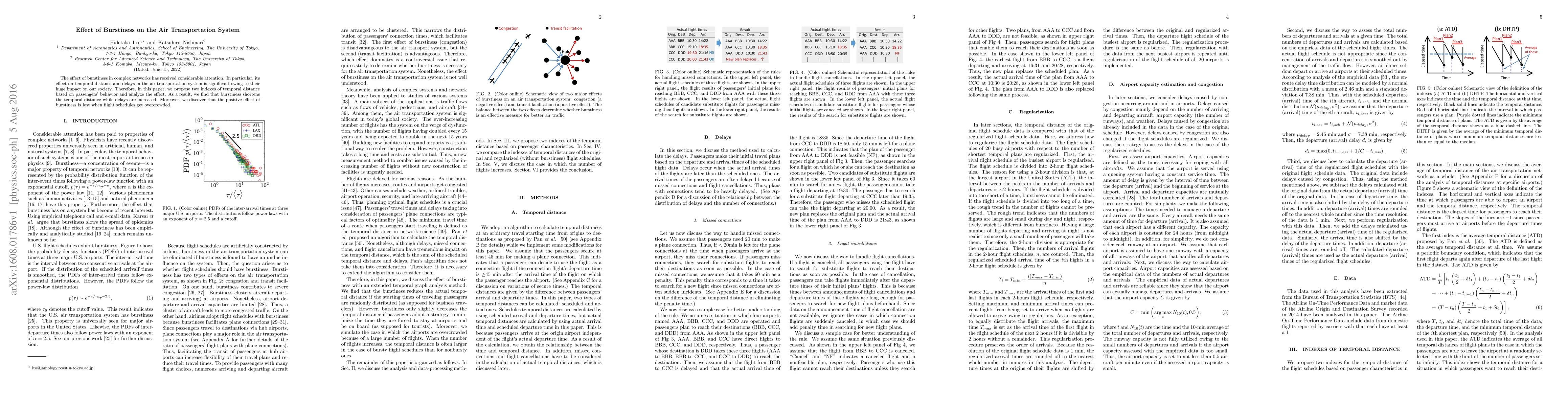 This paper proposes two indexes to measure temporal distance based on passenger behavior and finds that burstiness reduces temporal distance but increases delays, with overcrowded flight schedules negating the positive effects of burstiness.