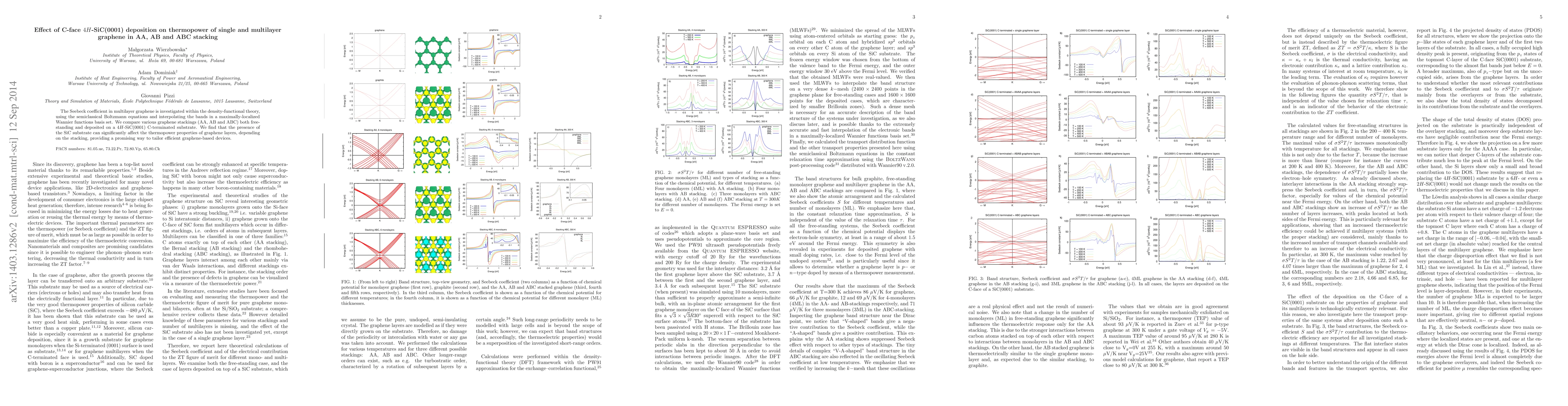 This paper investigates the impact of depositing multilayer graphene with different stackings (AA, AB, ABC) on a C-face 4H-SiC(0001) substrate on its thermopower using density-functional theory. The study finds that the SiC substrate significantly alters graphene's thermopower properties, offering a method to optimize graphene-based devices.