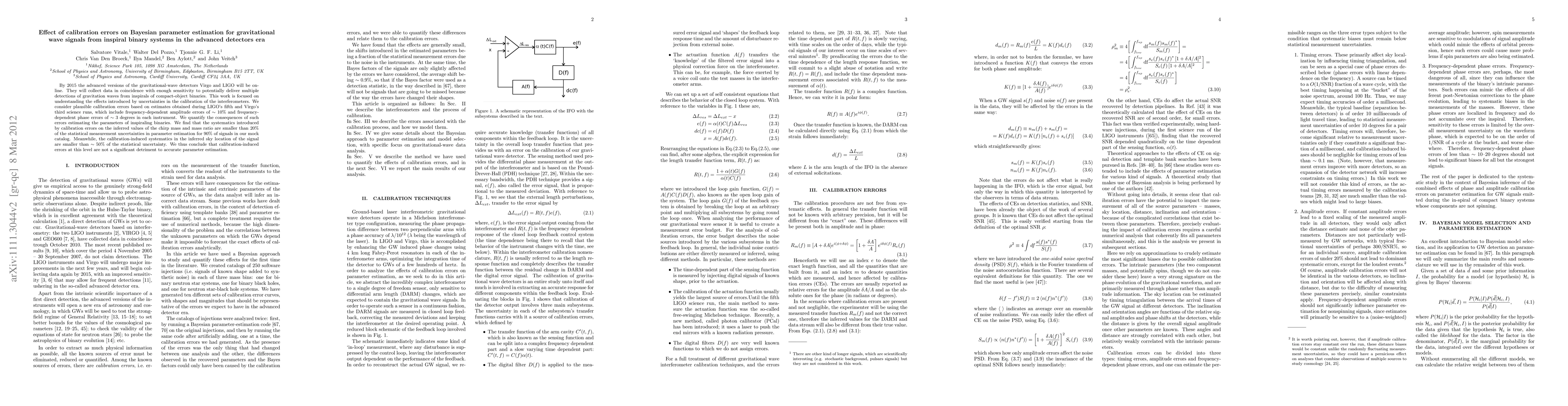 This paper investigates the impact of calibration uncertainties in advanced gravitational-wave detectors on Bayesian parameter estimation for inspiral binary systems. It finds that calibration errors, including amplitude and phase errors, introduce systematics that are less than 20% of the statistical uncertainties for chirp mass and mass ratio, and less than 50% for sky location, indicating they are not a major detriment to parameter estimation.