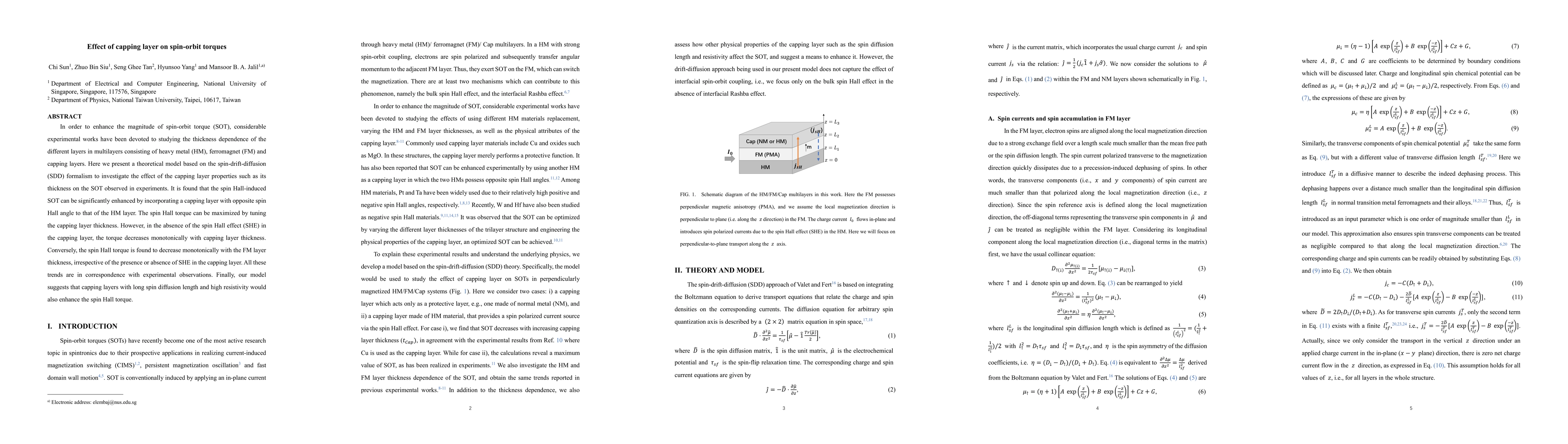 This paper presents a theoretical model to study how capping layer properties, such as thickness, affect spin-orbit torques (SOT) in multilayers. The model reveals that incorporating a capping layer with an opposite spin Hall angle to the heavy metal layer can significantly enhance spin-orbit torque, with optimal torque achieved through thickness tuning.