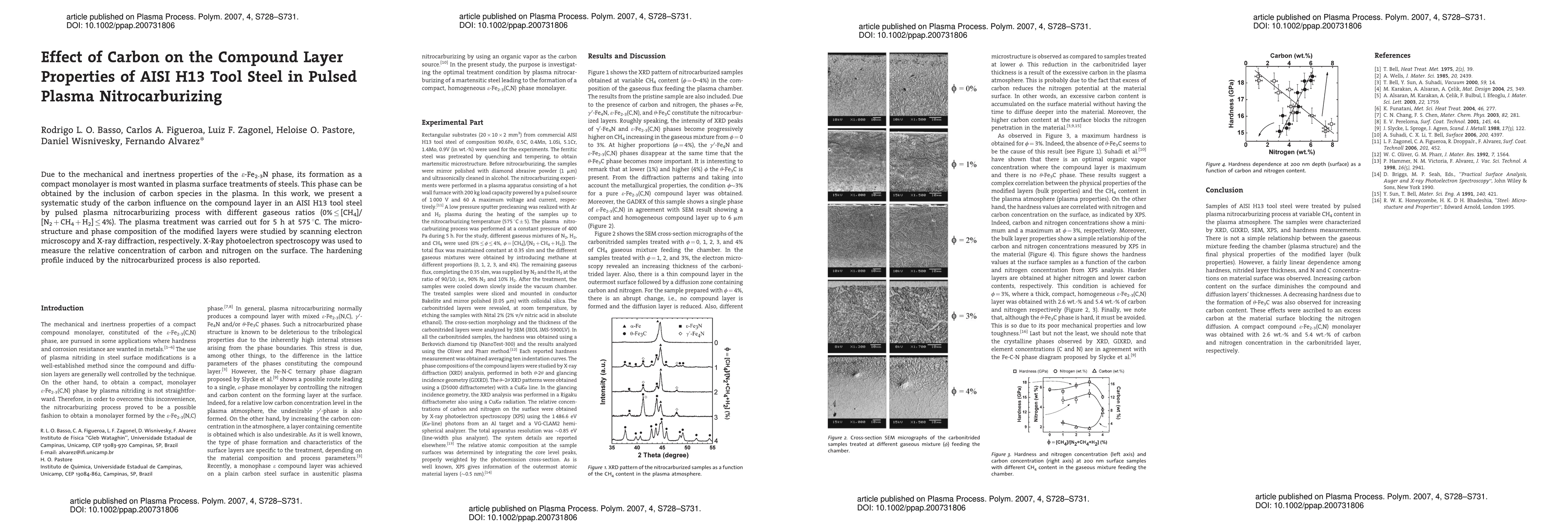 This study investigates how varying carbon levels in the plasma affect the compound layer properties of AISI H13 tool steel during pulsed plasma nitrocarburizing, focusing on the formation of the mechanically beneficial Epsilon phase. Results show that optimal carbon inclusion leads to a compact monolayer, enhancing surface properties.