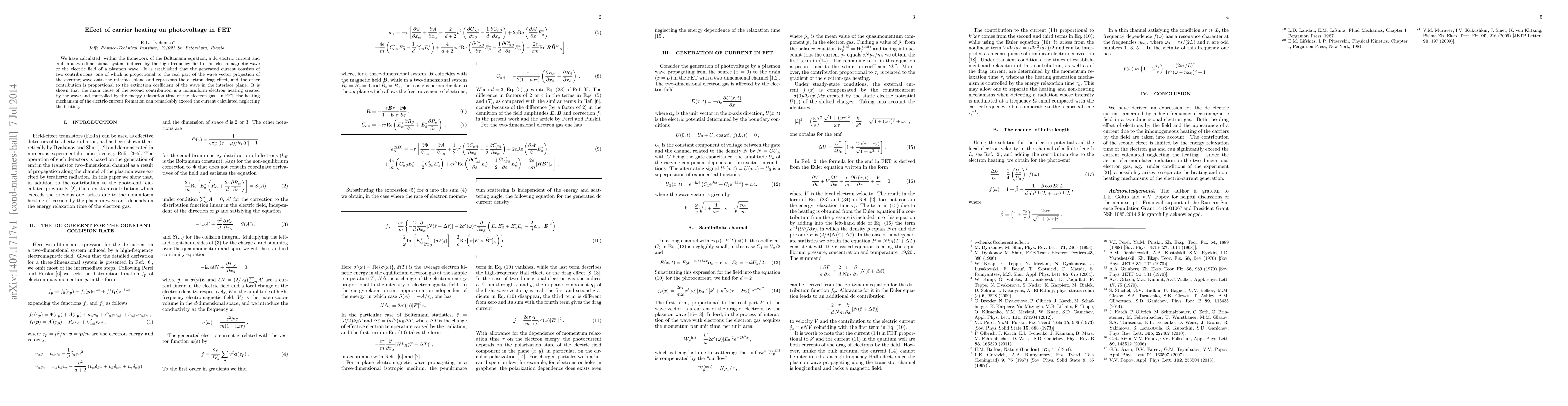 Researchers found that carrier heating in FETs significantly increases photovoltage due to non-uniform electron heating caused by electromagnetic waves or plasmon waves.