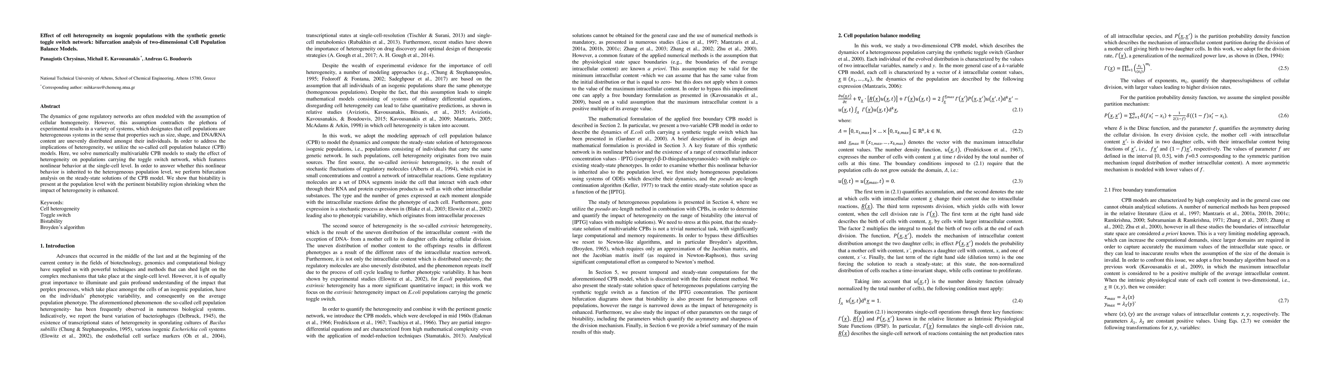 The dynamics of gene regulatory networks are often modeled with the assumption of cellular homogeneity. However, this assumption contradicts the plethora of experimental results in a variety of systems, which designates that cell populations are heterogeneous systems in the sense that properties such as size, shape, and DNA/RNA content are unevenly distributed amongst their individuals. In order to address the implications of heterogeneity, we utilize the so-called cell population balance (CPB) models. Here, we solve numerically multivariable CPB models to study the effect of heterogeneity on populations carrying the toggle switch network, which features nonlinear behavior at the single-cell level. In order to answer whether this nonlinear behavior is inherited to the heterogeneous population level, we perform bifurcation analysis on the steady-state solutions of the CPB model. We show that bistability is present at the population level with the pertinent bistability region shrinking when the impact of heterogeneity is enhanced.