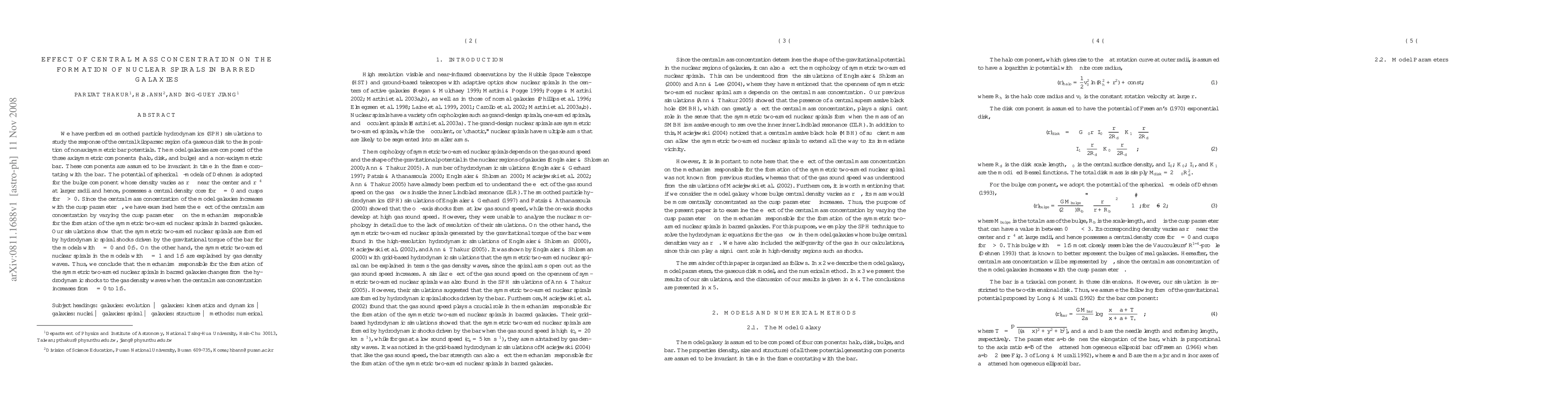This paper uses SPH simulations to investigate how varying central mass concentration affects the formation of nuclear spirals in barred galaxies. It finds that hydrodynamic spiral shocks dominate for low central mass concentrations, while gas density waves become the primary mechanism for higher concentrations.