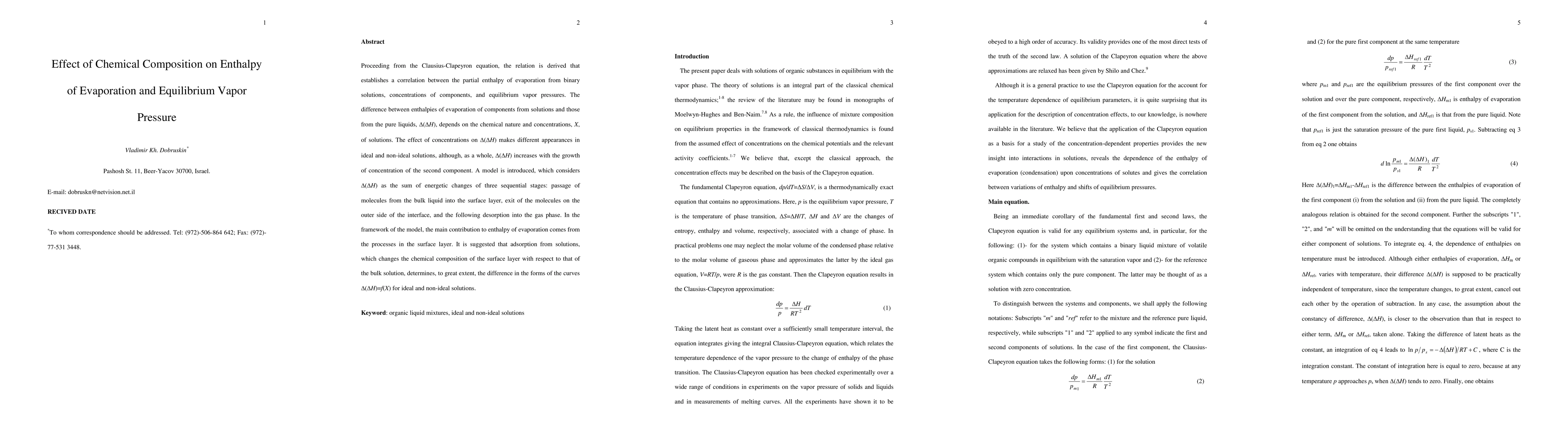 This paper explores how the chemical composition of a solution affects its enthalpy of evaporation and equilibrium vapor pressure. It proposes a model that suggests adsorption from solutions plays a key role in determining these properties.