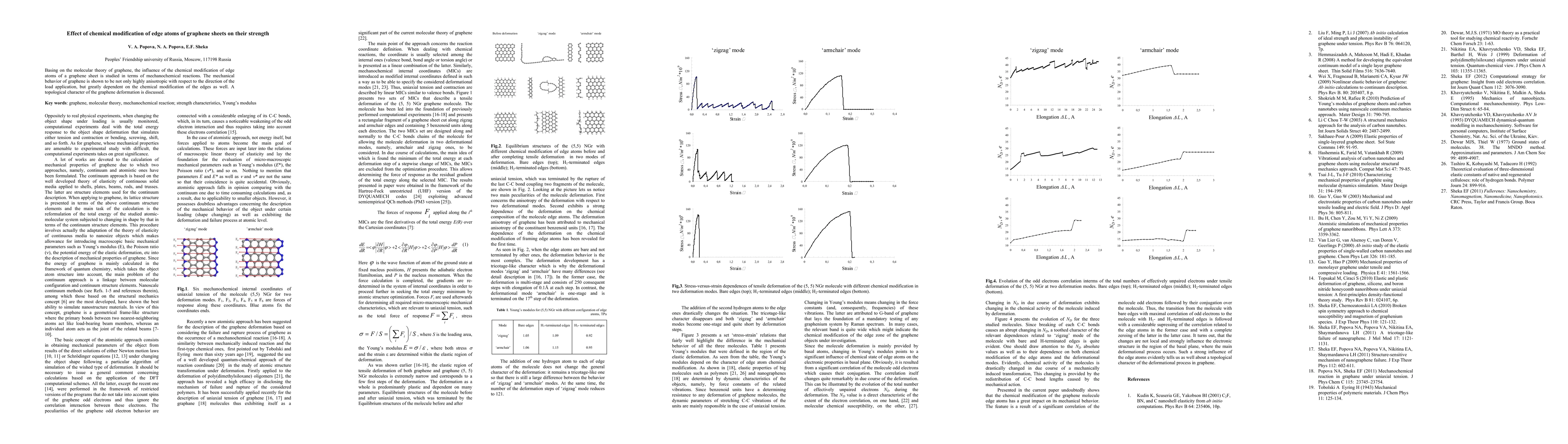 Summary: This study explores the impact of chemical modification of graphene sheet edges on its mechanical strength, revealing significant anisotropy and dependency on edge modifications, and discussing the topological nature of graphene deformation under load.