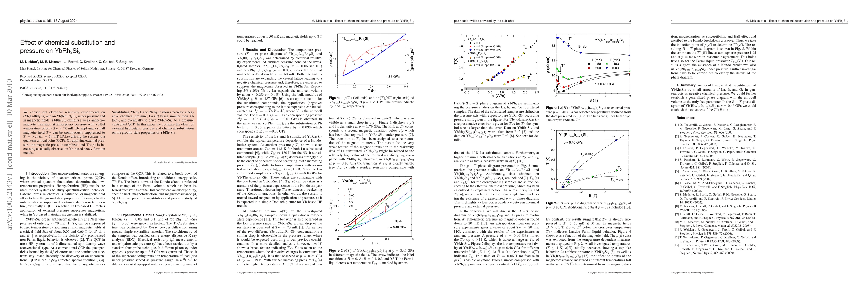 Researchers studied YbRh2Si2's magnetic properties under pressure and found that substituting chemical elements can control a quantum critical point. External pressure and chemical substitution have complementary effects on the material's ground state.