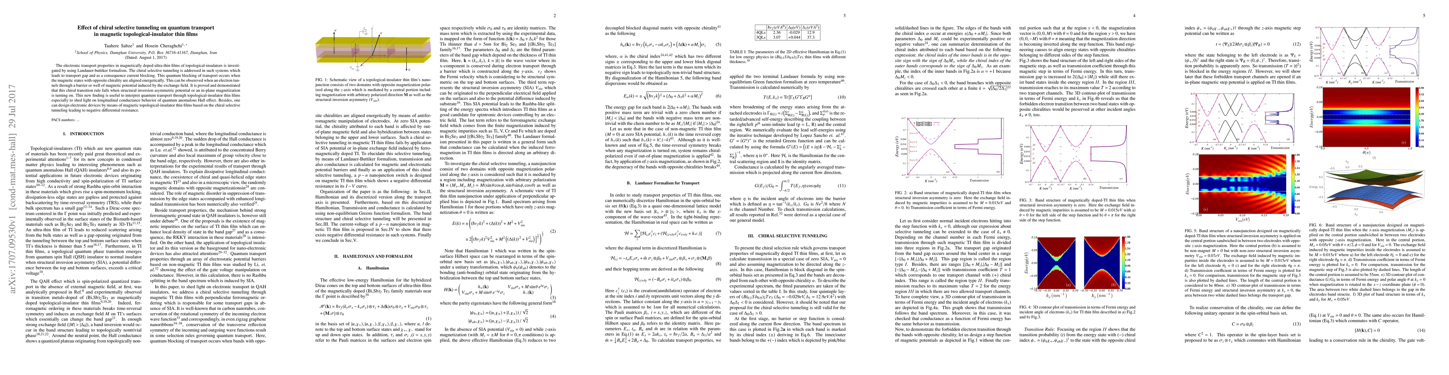 This paper investigates the impact of chiral selective tunneling on quantum transport in magnetic topological-insulator thin films, revealing that it leads to transport gap and current blocking when magnetic states of opposite chirality are aligned. The study demonstrates that this effect can be disrupted by structural inversion asymmetric potential or in-plane magnetization.