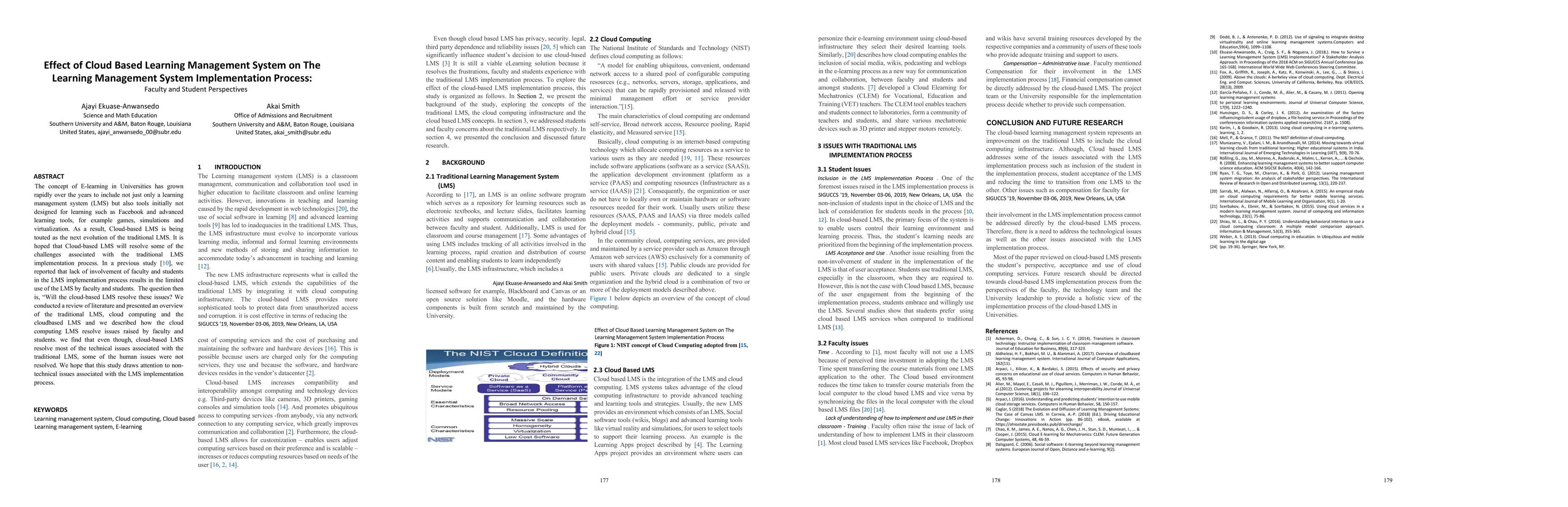 The concept of E-learning in Universities has grown rapidly over the years to include not just only a learning management system but also tools initially not designed for learning such as Facebook and advanced learning tools, for example games, simulations and virtualization. As a result, Cloud-based LMS is being touted as the next evolution of the traditional LMS. It is hoped that Cloud based LMS will resolve some of the challenges associated with the traditional LMS implementation process. In a previous study, we reported that lack of involvement of faculty and students in the LMS implementation process results in the limited use of the LMS by faculty and students. The question then is, Will the cloud-based LMS resolve these issues? We conducted a review of literature and presented an overview of the traditional LMS, cloud computing and the cloudbased LMS and we described how the cloud computing LMS resolve issues raised by faculty and students. we find that even though, cloud-based LMS resolve most of the technical issues associated with the traditional LMS, some of the human issues were not resolved. We hope that this study draws attention to non-technical issues associated with the LMS implementation process.