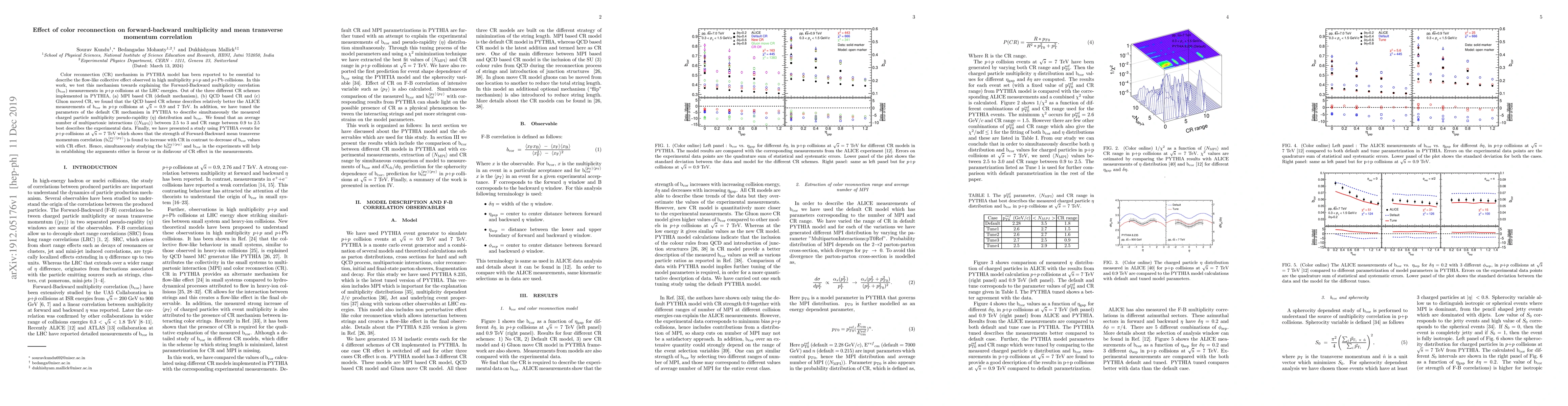 This study extends previous research by simultaneously tuning the average N_MPI and CR range in PYTHIA to describe both charged particle η distributions and b_cor measurements. It also introduces a spherocity-dependent analysis to separate contributions to F-B correlations from isotropic and jet-like events, highlighting the dominance of multiple parton interactions (MPI) effects in isotropic events.