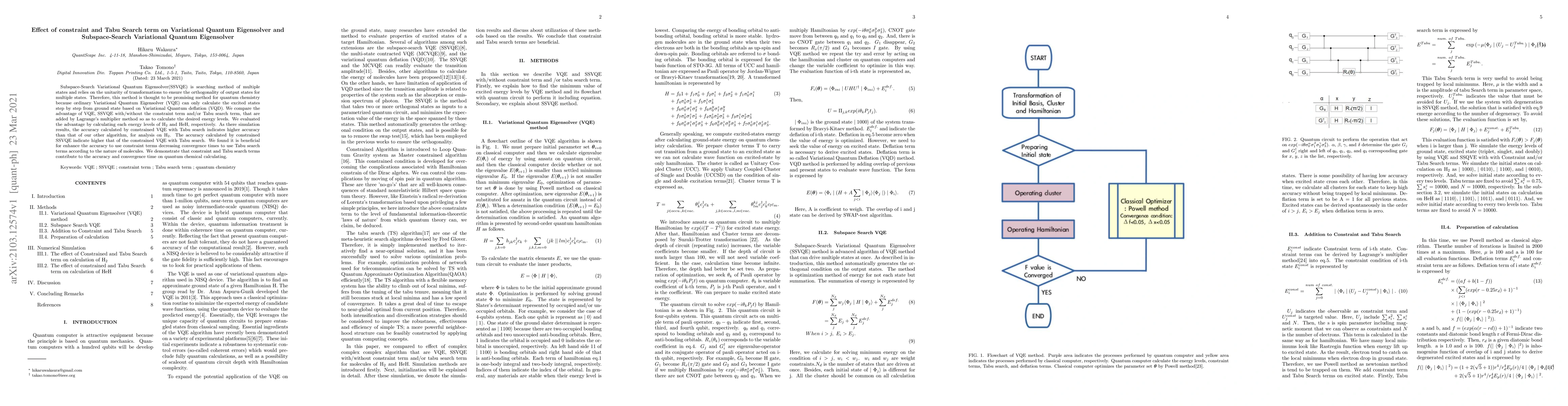 Researchers compared the performance of Variational Quantum Eigensolver (VQE) and Subspace-Search Variational Quantum Eigensolver (SSVQE) with added constraint terms and Tabu search, finding that constrained SSVQE outperforms VQE with Tabu search for certain molecules.