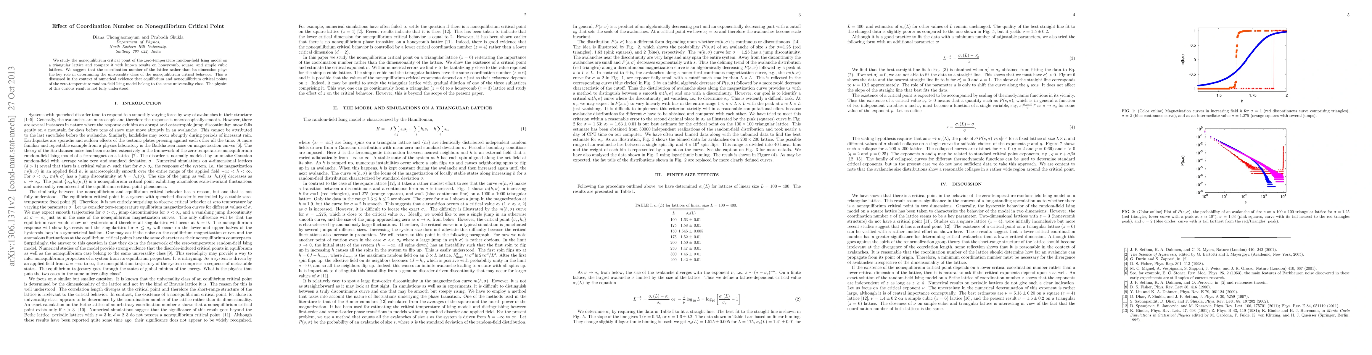 We study the nonequilibrium critical point of the zero temperature random field Ising model on a triangular lattice and compare it with known results on honeycomb, square, and simple cubic lattices. We suggest that the coordination number of the lattice rather than its dimension plays the key role in determining the universality class of the nonequilibrium critical behavior. This is discussed in the context of numerical evidence that equilibrium and nonequilibrium critical points of the zero-temperature random field Ising model belong to the same universality class. The physics of this curious result is not fully understood.