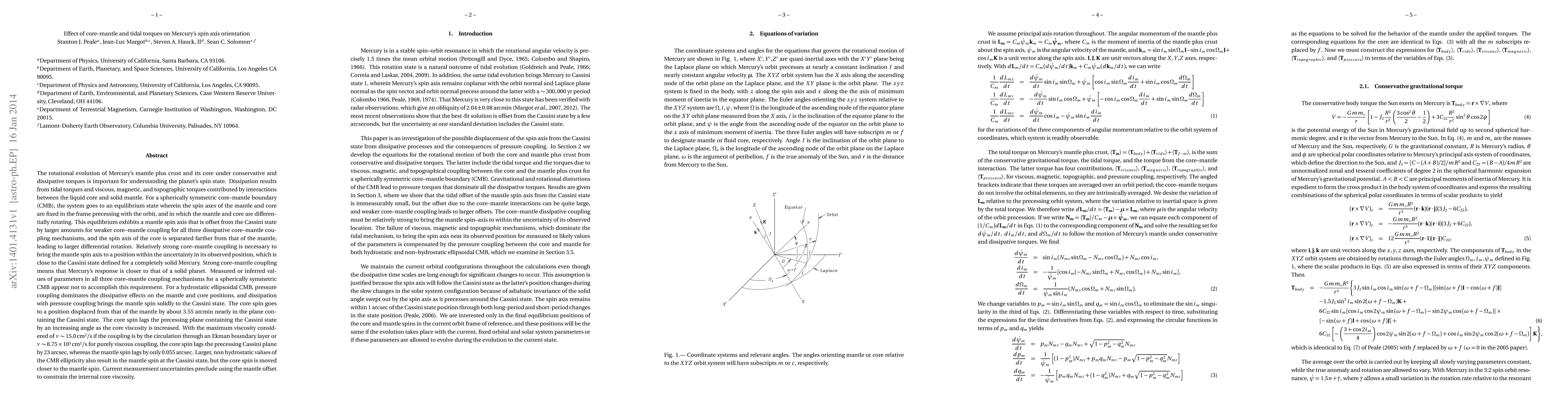 This study investigates the impact of core-mantle and tidal torques on Mercury's spin axis orientation, revealing that dissipative forces lead to differential rotation and an equilibrium state where the mantle and core spins are fixed relative to the orbit. The core spin lags significantly behind the mantle, suggesting strong core-mantle coupling is necessary to achieve the observed spin state.