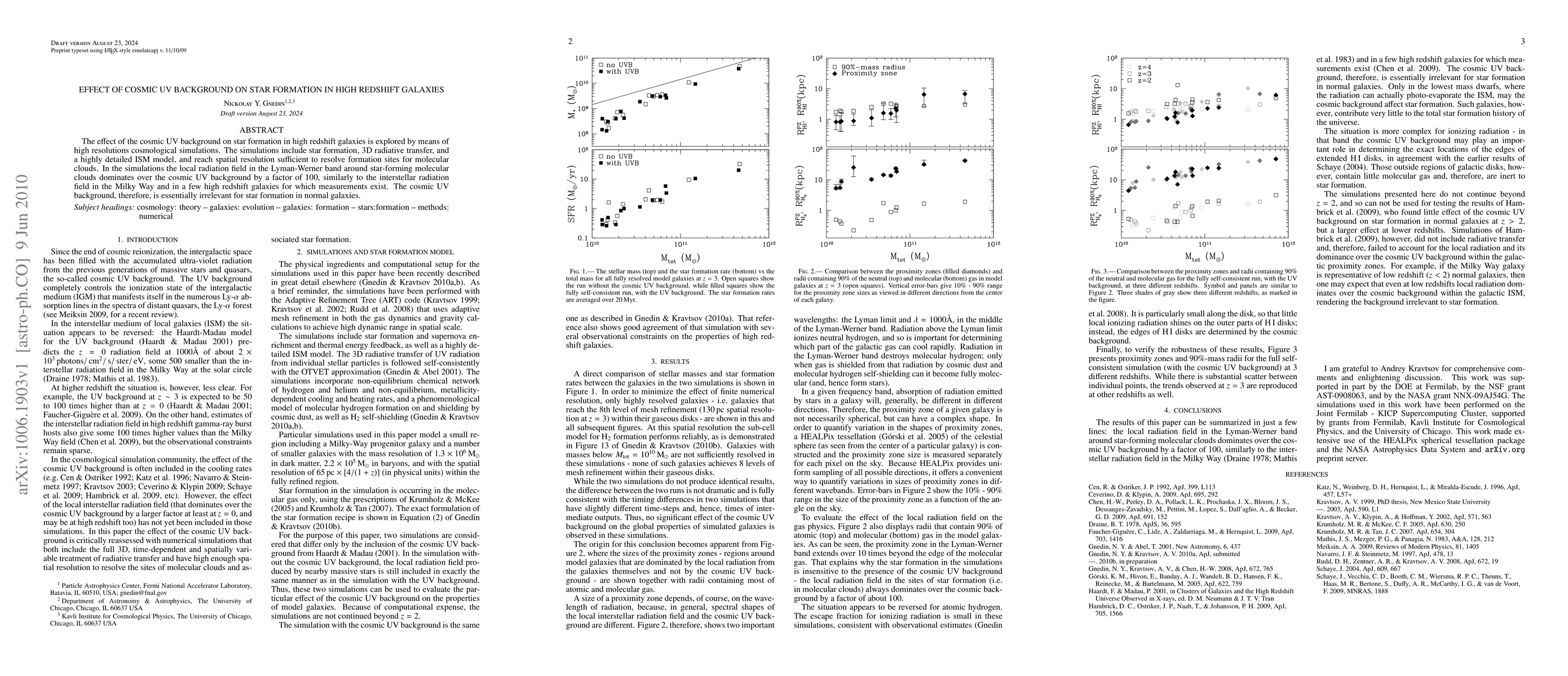 The authors used a combination of numerical simulations and analytical models to study the impact of the cosmic UV background on star formation.