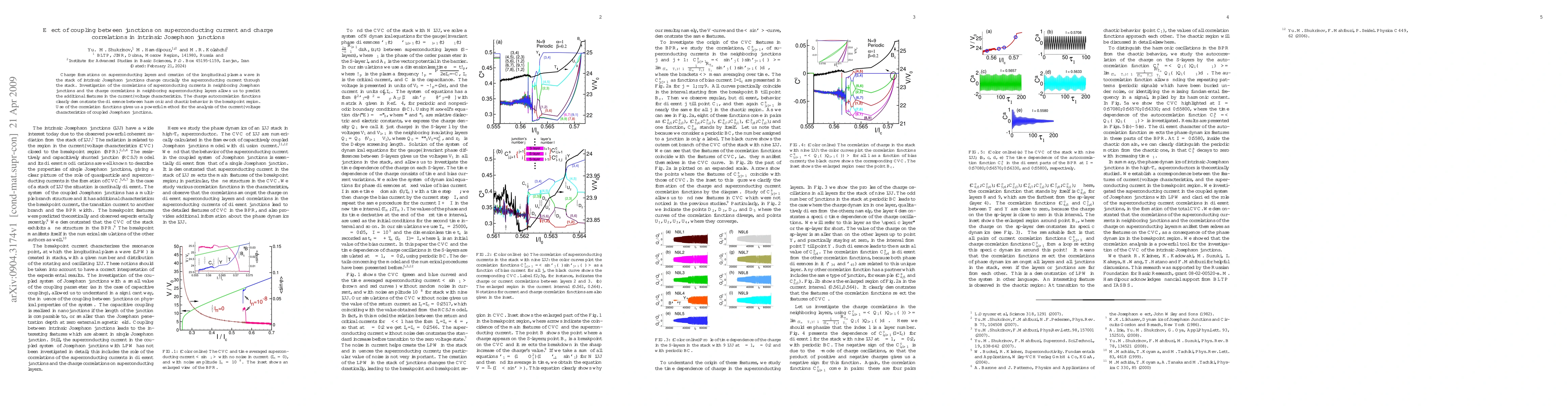 This paper investigates how coupling between intrinsic Josephson junctions influences superconducting current and charge correlations, revealing significant changes in current-voltage characteristics due to charge formations and plasma waves. Correlation functions provide insights into harmonic and chaotic behaviors, offering a powerful method for analyzing coupled junctions.