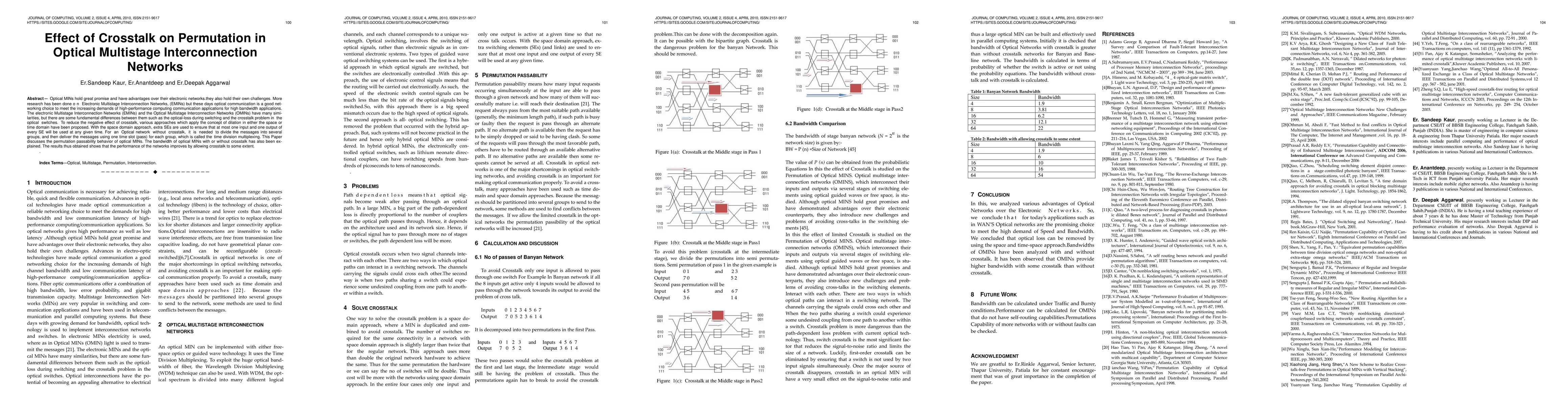 Optical MINs hold great promise and have advantages over their electronic networks.they also hold their own challenges. More research has been done on Electronic Multistage Interconnection Networks, (EMINs) but these days optical communication is a good networking choice to meet the increasing demands of high-performance computing communication applications for high bandwidth applications. The electronic Multistage Interconnection Networks (EMINs) and the Optical Multistage Interconnection Networks (OMINs) have many similarities, but there are some fundamental differences between them such as the optical-loss during switching and the crosstalk problem in the optical switches. To reduce the negative effect of crosstalk, various approaches which apply the concept of dilation in either the space or time domain have been proposed. With the space domain approach, extra SEs are used to ensure that at most one input and one output of every SE will be used at any given time. For an Optical network without crosstalk, it is needed to divide the messages into several groups, and then deliver the messages using one time slot (pass) for each group, which is called the time division multiplexing. This Paper discusses the permutation passability behavior of optical MINs. The bandwidth of optical MINs with or without crosstalk has also been explained. The results thus obtained shows that the performance of the networks improves by allowing crosstalk to some extent.