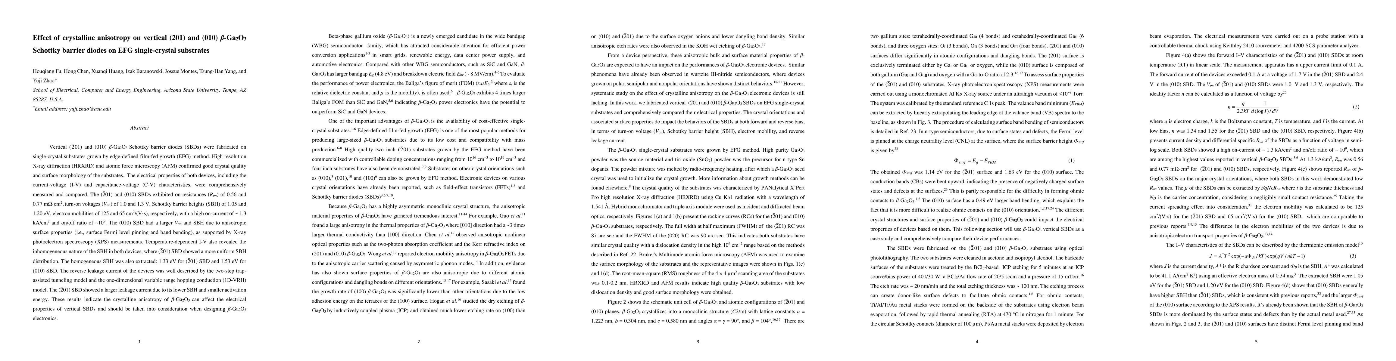 This study investigates the impact of crystalline anisotropy on the electrical properties of vertical (-201) and (010) beta-Ga2O3 Schottky barrier diodes fabricated on EFG single-crystal substrates, revealing that the (010) SBD exhibited higher on-resistance, turn-on voltage, and Schottky barrier height due to anisotropic surface properties, while the (-201) SBD showed a more uniform barrier height distribution.