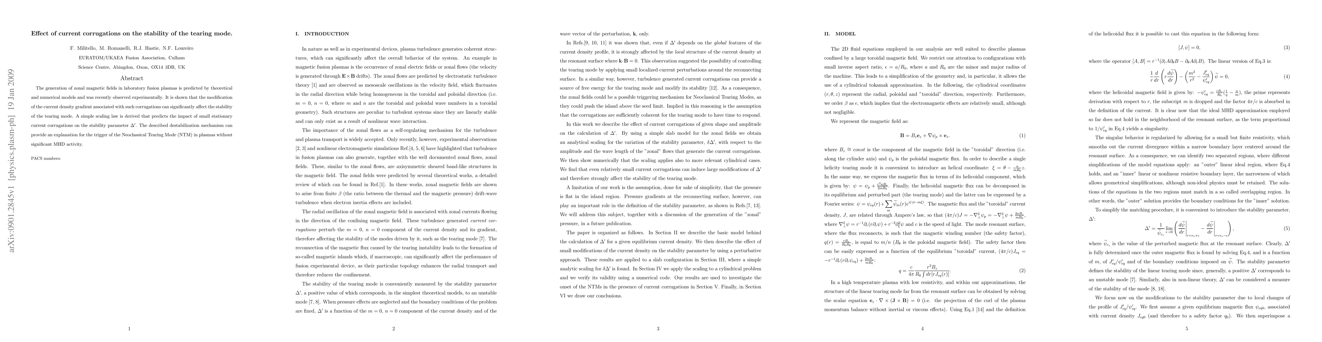 This paper investigates how current corrugations influence the stability of the tearing mode in fusion plasmas, deriving a scaling law to predict the impact on the stability parameter $\Delta'$. It suggests that these corrugations can destabilize the Neoclassical Tearing Mode (NTM) even in plasmas with minimal MHD activity.