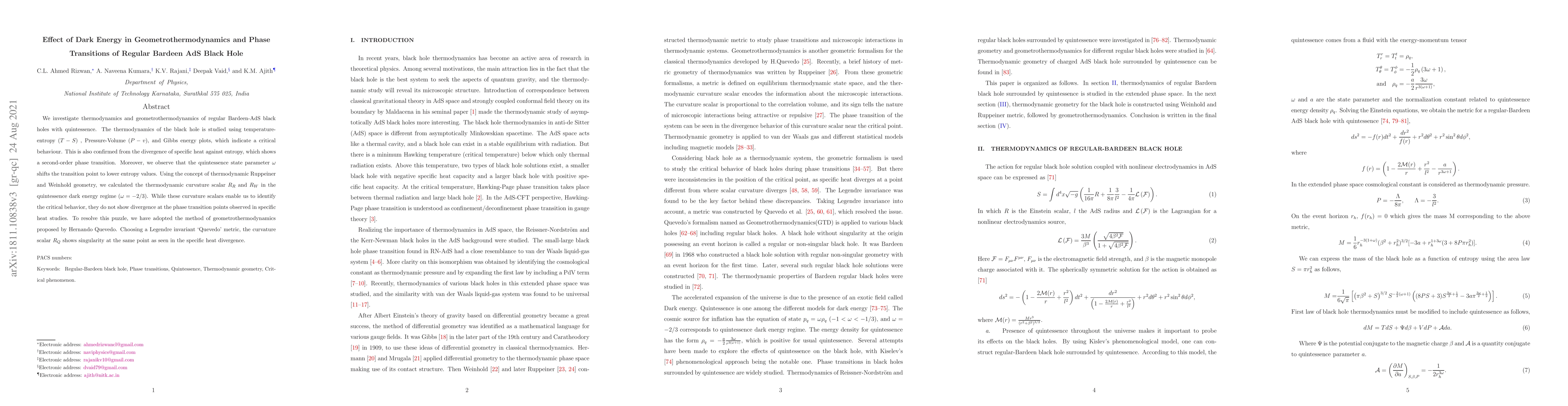 This paper examines the thermodynamics and geometrothermodynamics of a regular Bardeen AdS black hole influenced by quintessence, revealing a second-order phase transition via specific heat analysis. The study also employs thermodynamic curvature scalars to identify critical behavior, ultimately resolving discrepancies using Hernando Quevedo's geometrothermodynamics method.