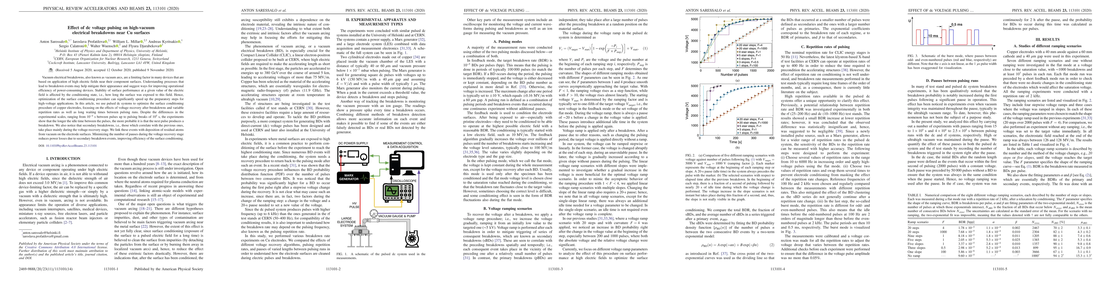 Researchers studied how pulsed DC voltage affects copper electrodes in high-vacuum conditions, finding that longer idle times increase the likelihood of breakdowns, which can be minimized by reducing pauses during voltage recovery.