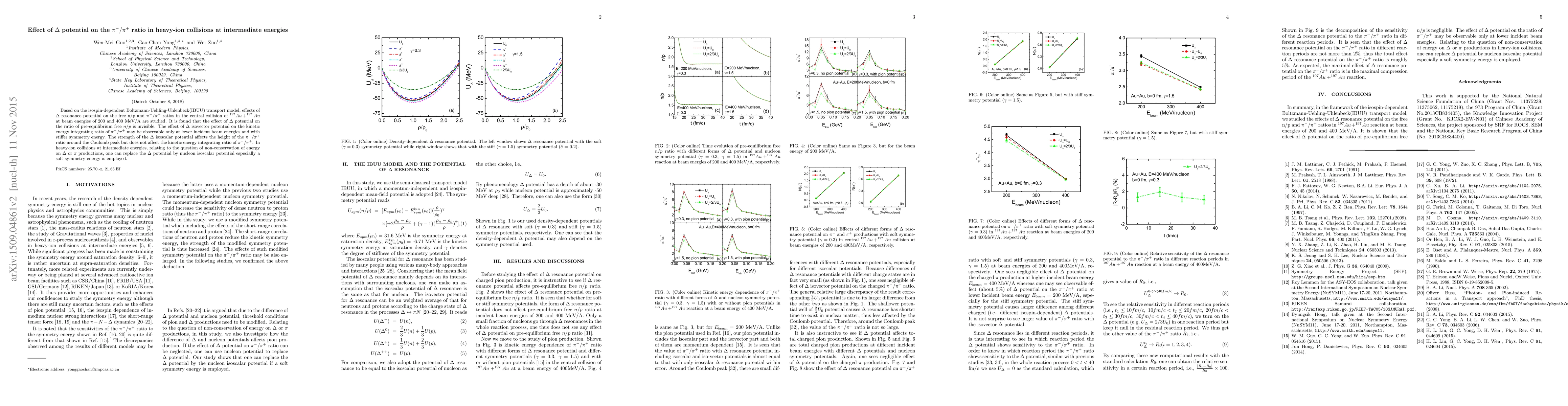 This study uses the IBUU transport model to investigate the impact of $\Delta$ resonance potential on the $\pi^-/\pi^+$ ratio in heavy-ion collisions at 200 and 400 MeV/A. The $\Delta$ potential does not affect the pre-equilibrium free $n/p$ ratio but may influence the $\pi^-/\pi^+$ ratio at lower energies and with stiffer symmetry energy.