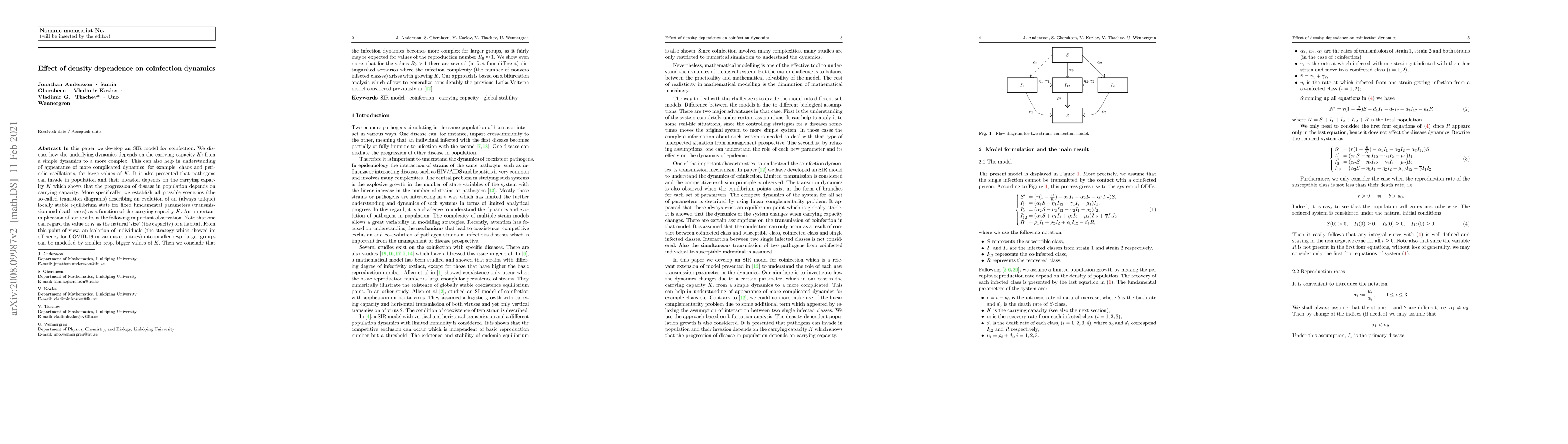 This paper develops an SIR model to explore coinfection dynamics influenced by density dependence, revealing that the carrying capacity $K$ determines the complexity of the dynamics, including potential chaos. The study uses bifurcation analysis to generalize traditional models, showing how pathogen invasion and disease progression are contingent on $K$.