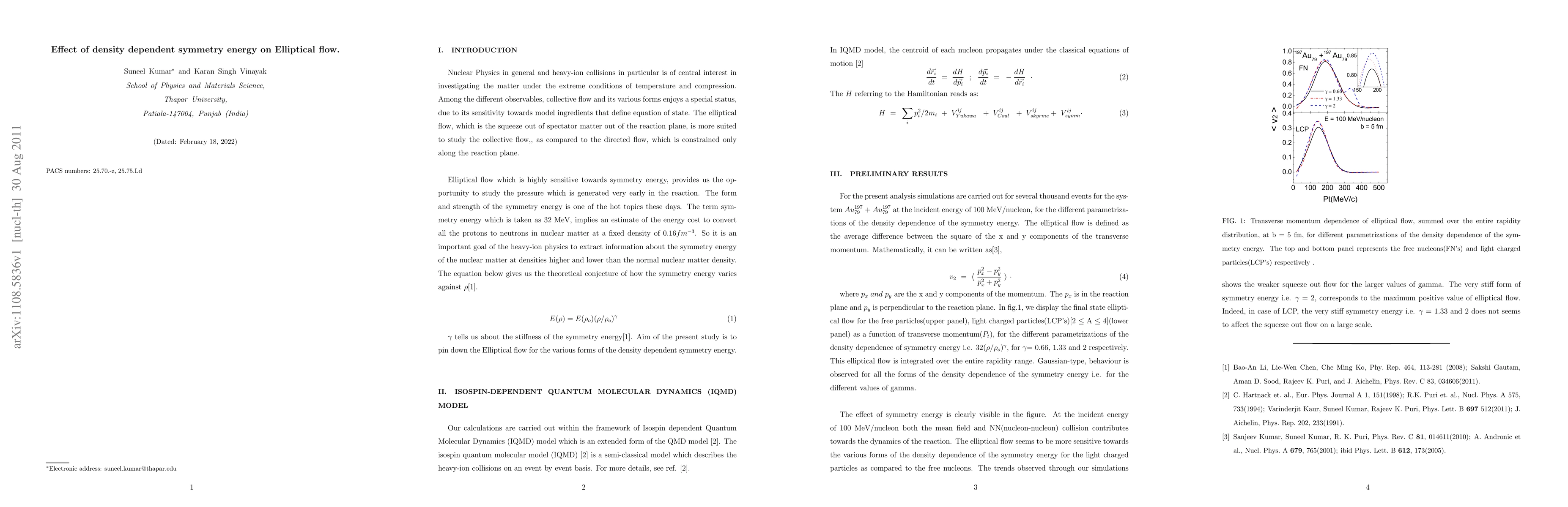 The effect of the density dependent symmetry energy on elliptical flow is studied using isospin-dependent quantum molecular dynamics model(IQMD). We have used the reduced isospin-dependent cross-section with soft equation of state to study the sensitivity of elliptical flow towards symmetry energy. Aim of the present study is to pin down the Elliptical flow for the various forms of the density dependent symmetry energy.
