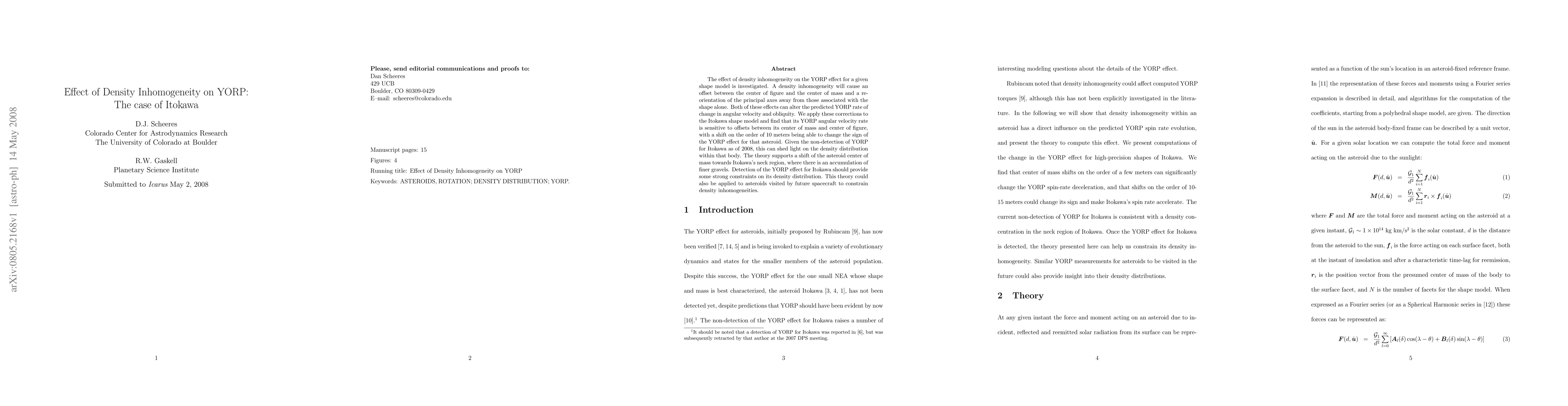 The YORP effect on asteroid Itokawa is affected by density inhomogeneity, with a 10-meter shift in center of mass changing the sign of the effect; this discovery can help constrain the asteroid's density distribution.