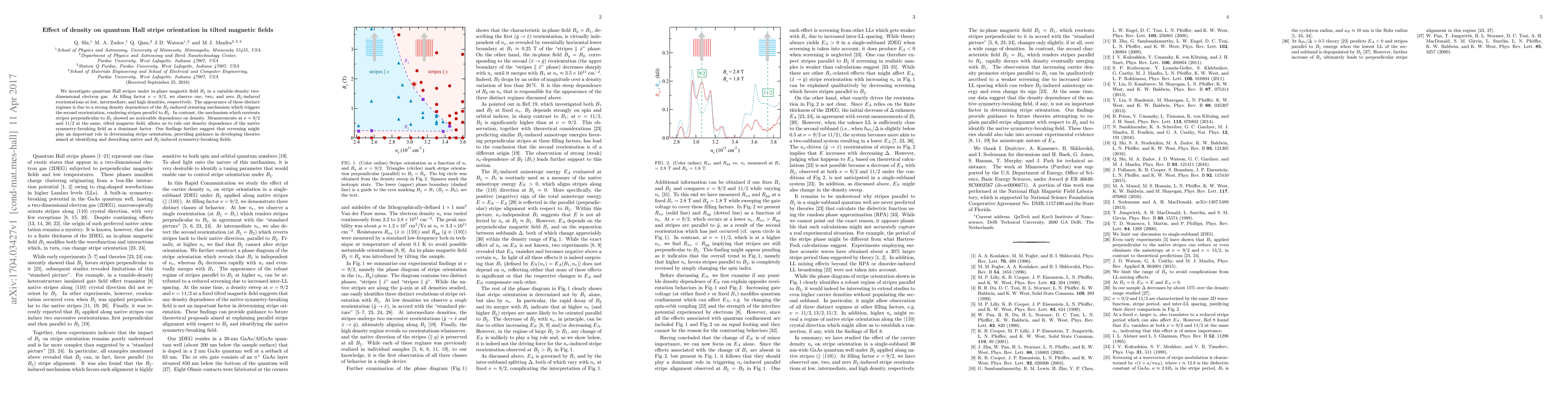This research explores how density impacts quantum Hall stripe orientation in tilted magnetic fields. Findings indicate distinct reorientation regimes at varying densities, with density significantly influencing the parallel orientation mechanism but not the perpendicular one. The study rules out density-dependent native symmetry-breaking fields as primary factors, suggesting screening's crucial role in stripe orientation, guiding future theoretical developments.