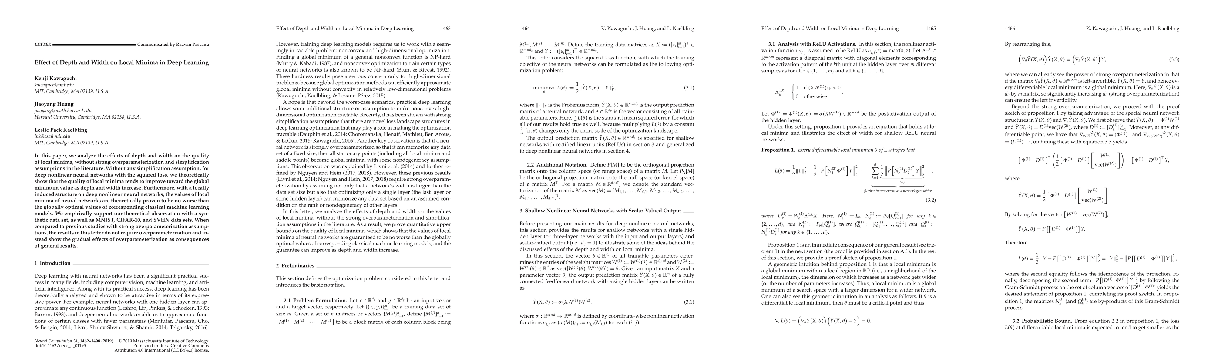 This paper theoretically demonstrates that increasing the depth and width of deep neural networks improves the quality of local minima, approaching the global minimum without strong over-parameterization assumptions. Empirical results on various datasets support these findings, showing that local minima are no worse than those of classical machine learning models.