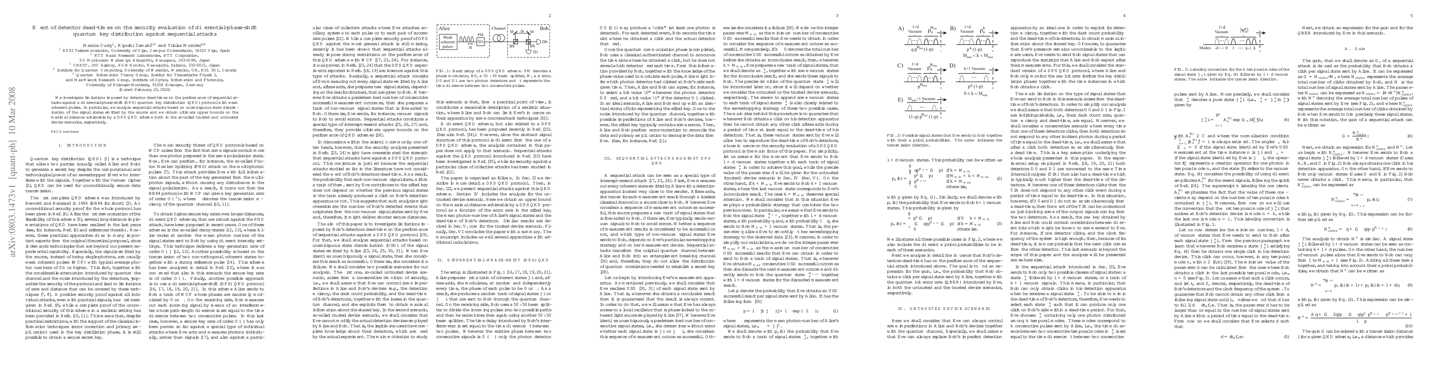 This paper examines how detector dead-times affect the security of a differential-phase-shift quantum key distribution protocol against sequential attacks. It establishes upper bounds on the maximum distance for secure key distribution under both trusted and untrusted device scenarios.