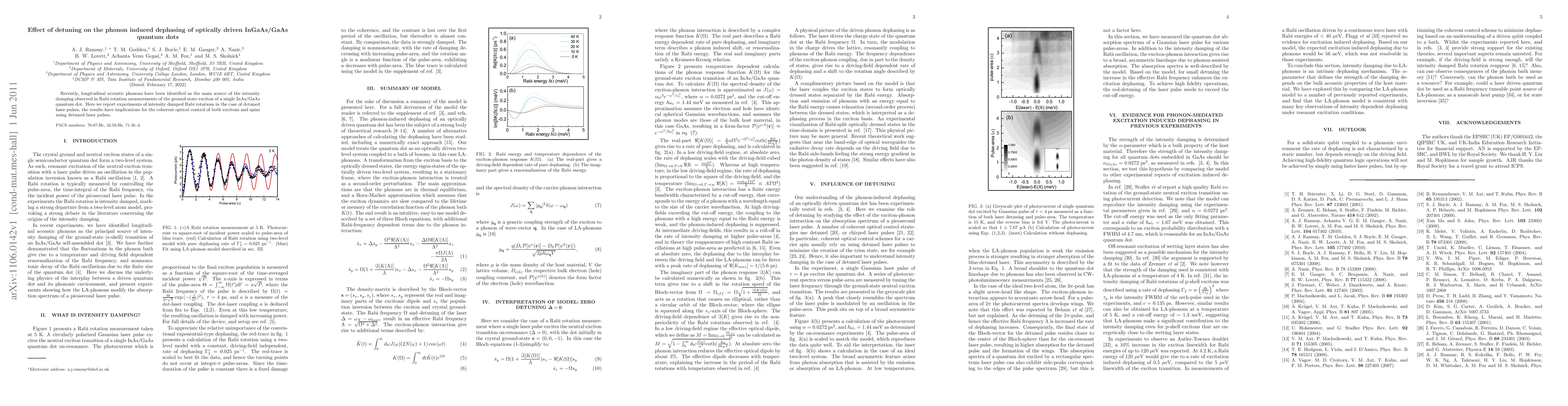 Recently, longitudinal acoustic phonons have been identified as the main source of the intensity damping observed in Rabi rotation measurements of the ground-state exciton of a single InAs/GaAs quantum dot. Here we report experiments of intensity damped Rabi rotations in the case of detuned laser pulses, the results have implications for the coherent optical control of both excitons and spins using detuned laser pulses.