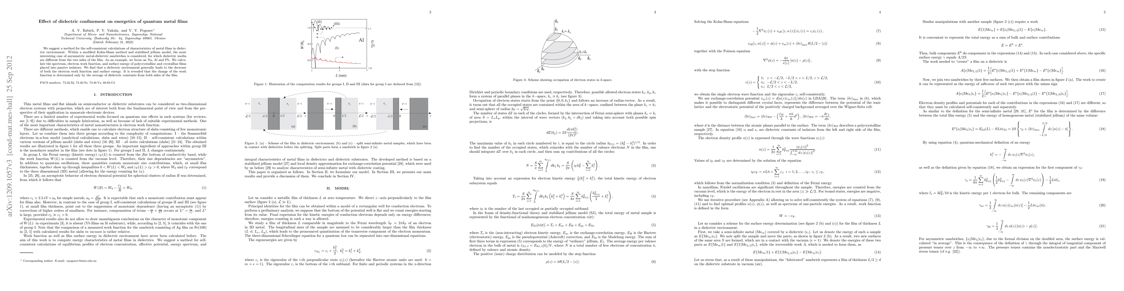 This research investigates how dielectric confinement affects metal films, finding that it generally reduces both electron work function and surface energy, with changes in work function determined by the average of dielectric constants from both sides of the film.