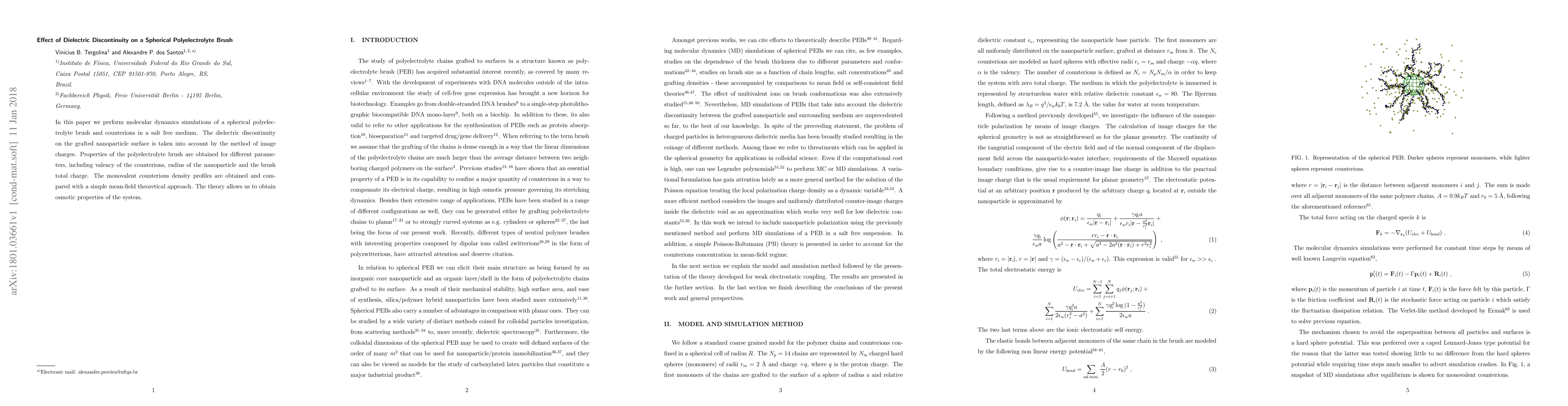 This paper uses molecular dynamics simulations to study a spherical polyelectrolyte brush, focusing on the impact of dielectric discontinuity on grafted nanoparticle surfaces. The study compares monovalent counterion density profiles with a theoretical mean-field approach to derive the osmotic properties of the system.