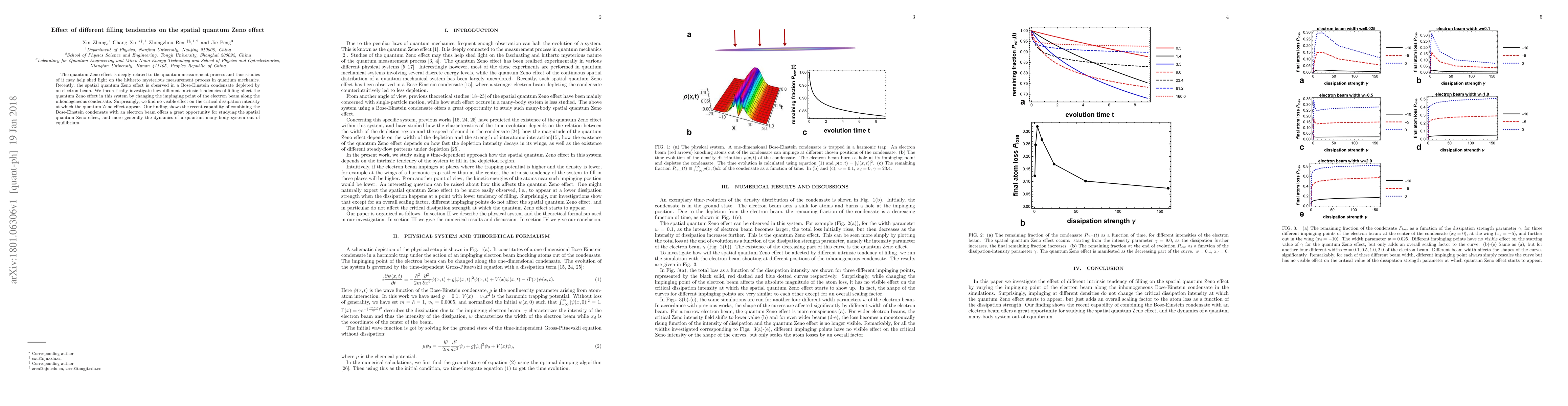 This paper investigates the spatial quantum Zeno effect in a Bose-Einstein condensate influenced by an electron beam, finding that varying the filling tendencies does not affect the critical dissipation intensity for the effect. The study highlights the potential of combining Bose-Einstein condensates with electron beams for exploring quantum dynamics in non-equilibrium systems.