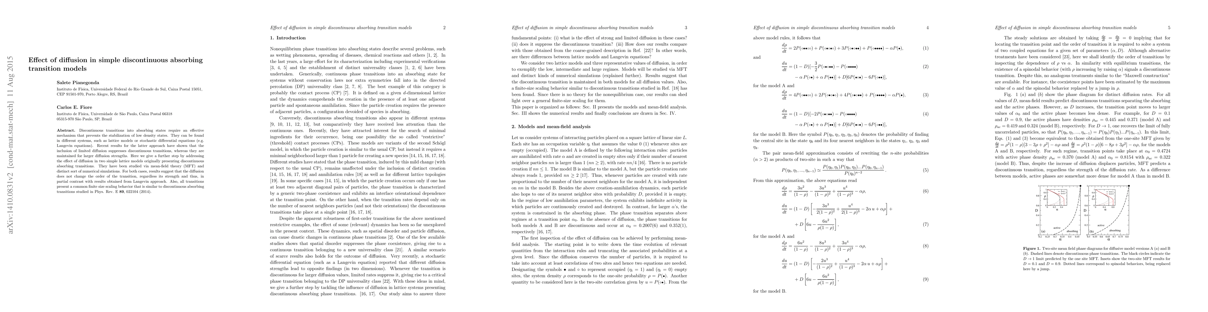 This paper investigates the effect of diffusion on simple lattice models with discontinuous absorbing transitions, finding that diffusion does not alter the transition order, contrasting with results from stochastic differential equations. Both mean-field theory and numerical simulations show consistent finite size scaling behavior similar to previously studied discontinuous transitions.