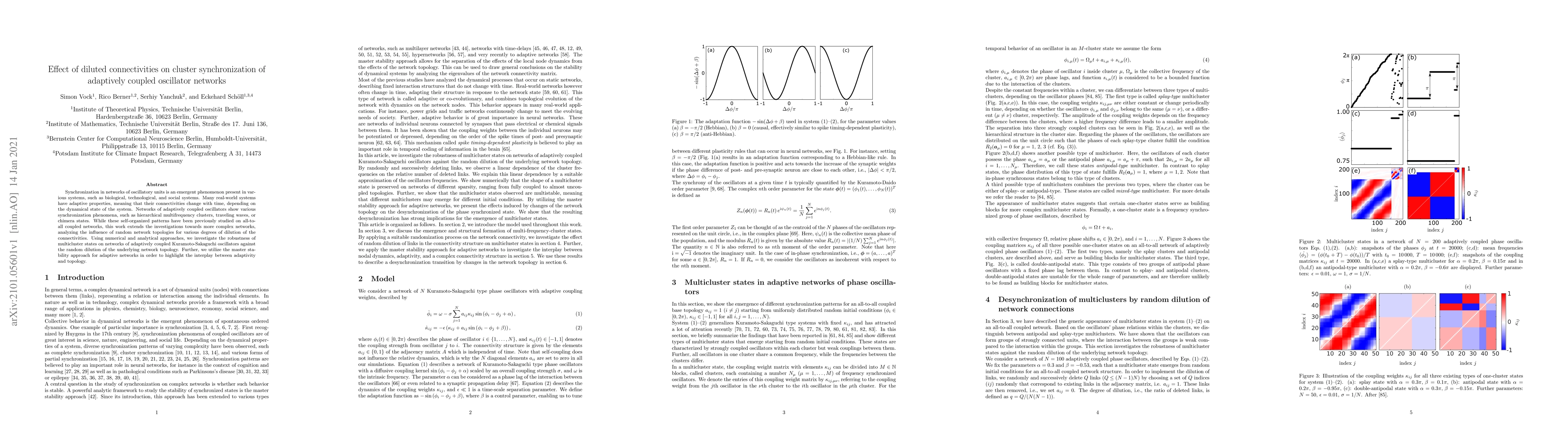 Researchers investigated how diluting connections in networks of oscillators affects synchronization patterns, finding that reducing connectivity robustly maintains multicluster states, with implications for understanding adaptive complex systems.