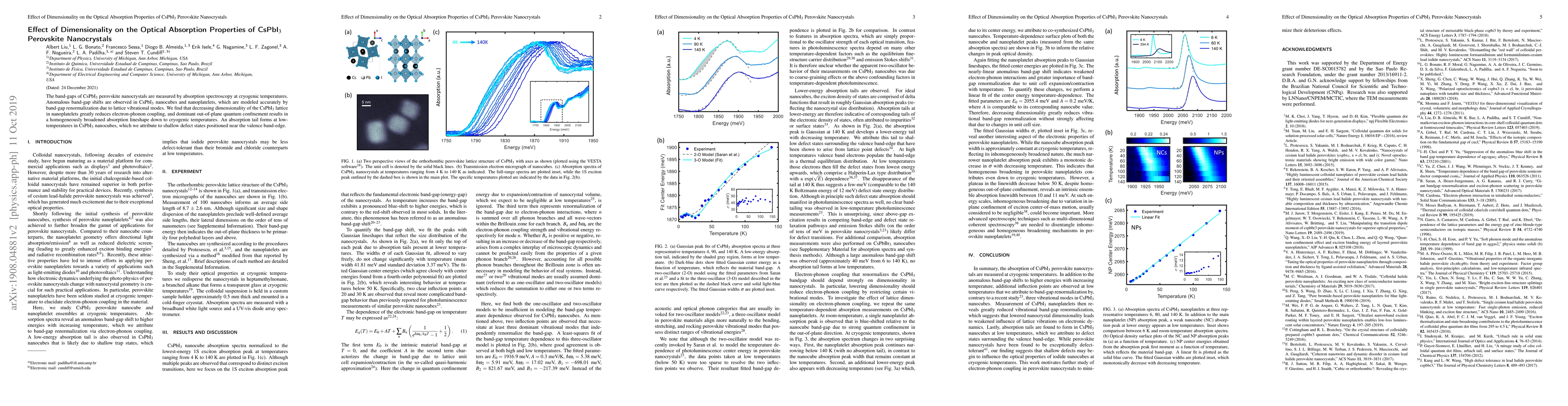 The band-gaps of CsPbI$_3$ perovskite nanocrystals are measured by absorption spectroscopy at cryogenic temperatures. Anomalous band-gap shifts are observed in CsPbI$_3$ nanocubes and nanoplatelets, which are modeled accurately by band-gap renormalization due to lattice vibrational modes. We find that decreasing dimensionality of the CsPbI$_3$ lattice in nanoplatelets greatly reduces electron-phonon coupling, and dominant out-of-plane quantum confinement results in a homogeneously broadened absorption lineshape down to cryogenic temperatures. An absorption tail forms at low-temperatures in CsPbI$_3$ nanocubes, which we attribute to shallow defect states positioned near the valence band-edge.