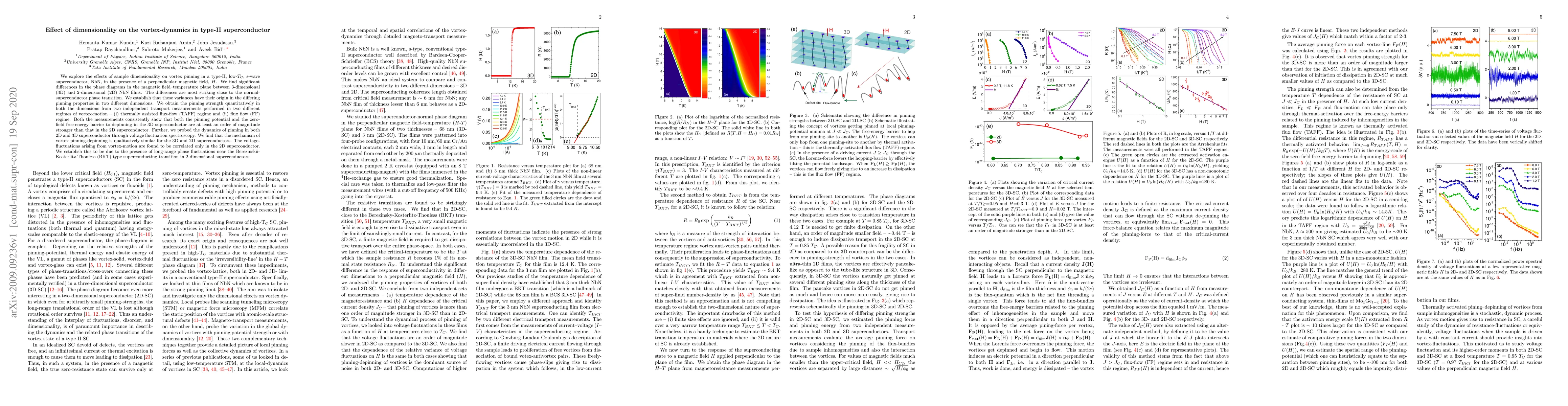 This study investigates how sample dimensionality affects vortex pinning in type-II superconductors, specifically NbN, finding significant differences in vortex dynamics between 3D and 2D films. The pinning strength is substantially greater in 3D than in 2D, with both the pinning potential and free-energy barrier being an order of magnitude stronger in 3D, as confirmed by transport measurements and voltage fluctuation spectroscopy.