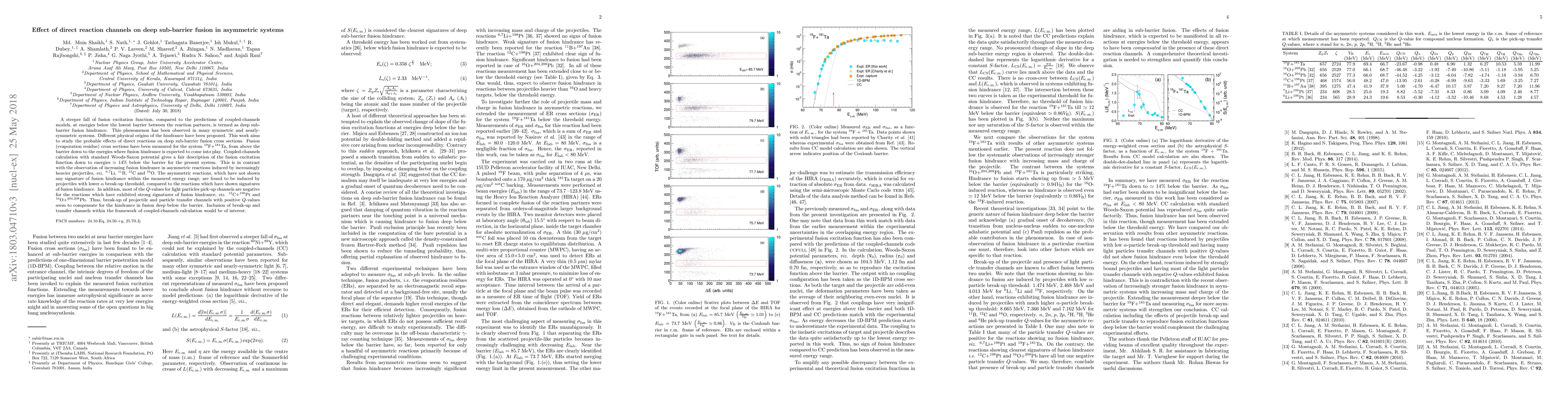 This study investigates the impact of direct reaction channels on deep sub-barrier fusion hindrance in asymmetric nuclear systems, finding that the fusion excitation function deviates significantly below the barrier. The analysis suggests that break-up and particle transfer channels with positive Q-values may compensate for fusion hindrance, indicating the need for coupled-channels calculations to include these effects.
