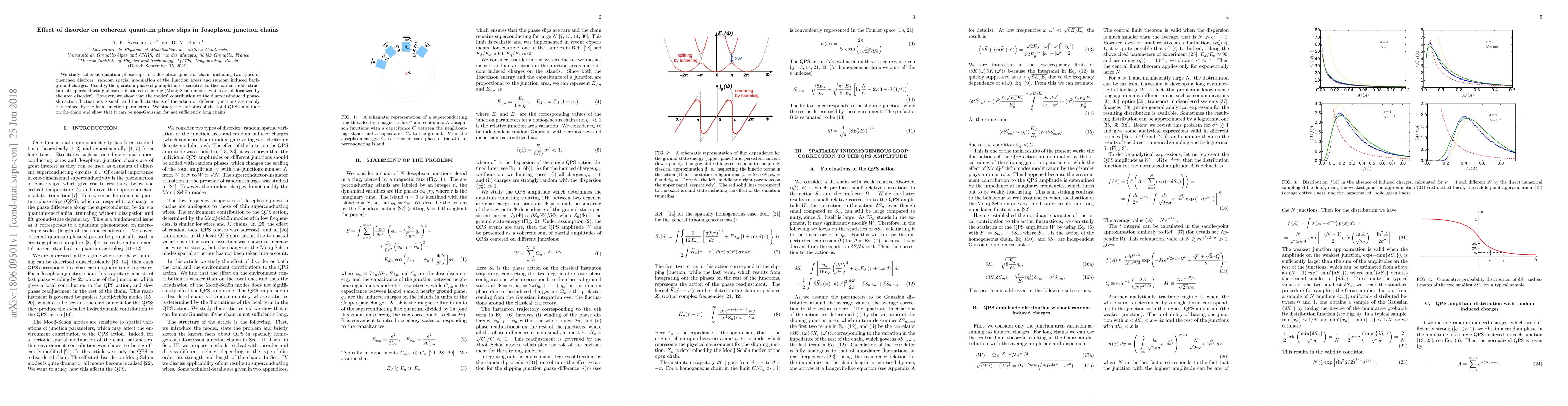 This paper investigates the impact of quenched disorder on coherent quantum phase slips in Josephson junction chains, revealing that while area disorder localizes phase oscillation modes, it has a minor effect on phase-slip action fluctuations. The study finds that the total quantum phase-slip amplitude statistics can deviate from Gaussian for shorter chains.