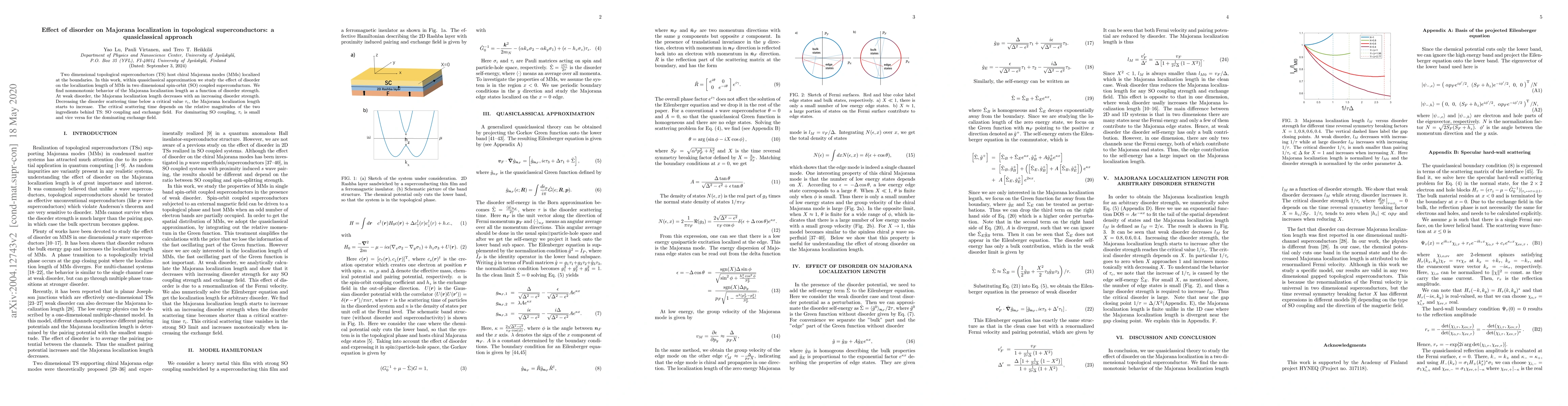 Two dimensional topological superconductors (TS) host chiral Majorana modes (MMs) localized at the boundaries. In this work, within quasiclassical approximation we study the effect of disorder on the localization length of MMs in two dimensional spin-orbit (SO) coupled superconductors. We find nonmonotonic behavior of the Majorana localization length as a function of disorder strength. At weak disorder, the Majorana localization length decreases with an increasing disorder strength. Decreasing the disorder scattering time below a critical value $\tau_c$, the Majorana localization length starts to increase. The critical scattering time depends on the relative magnitudes of the two ingredients behind TS: SO coupling and exchange field. For dominating SO coupling, $\tau_c$ is small and vice versa for the dominating exchange field.