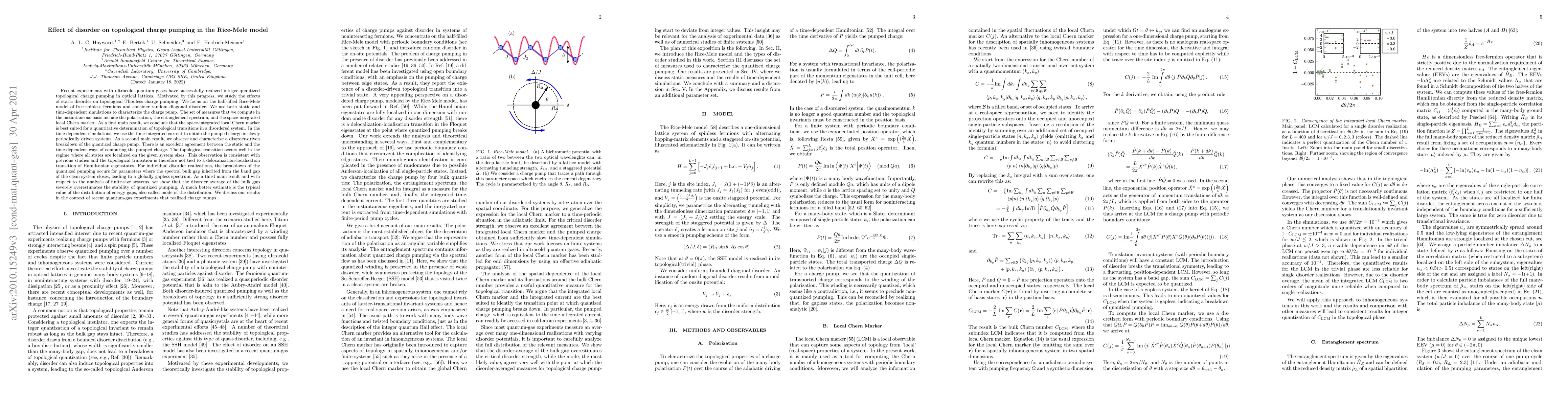 This paper investigates the impact of static disorder on topological charge pumping in the Rice-Mele model, demonstrating that the space-integrated local Chern marker effectively captures topological transitions. It reveals a disorder-driven breakdown of quantized charge pumping and highlights that the stability of pumping is better estimated by the mode of the distribution of energy gaps rather than the average bulk gap.